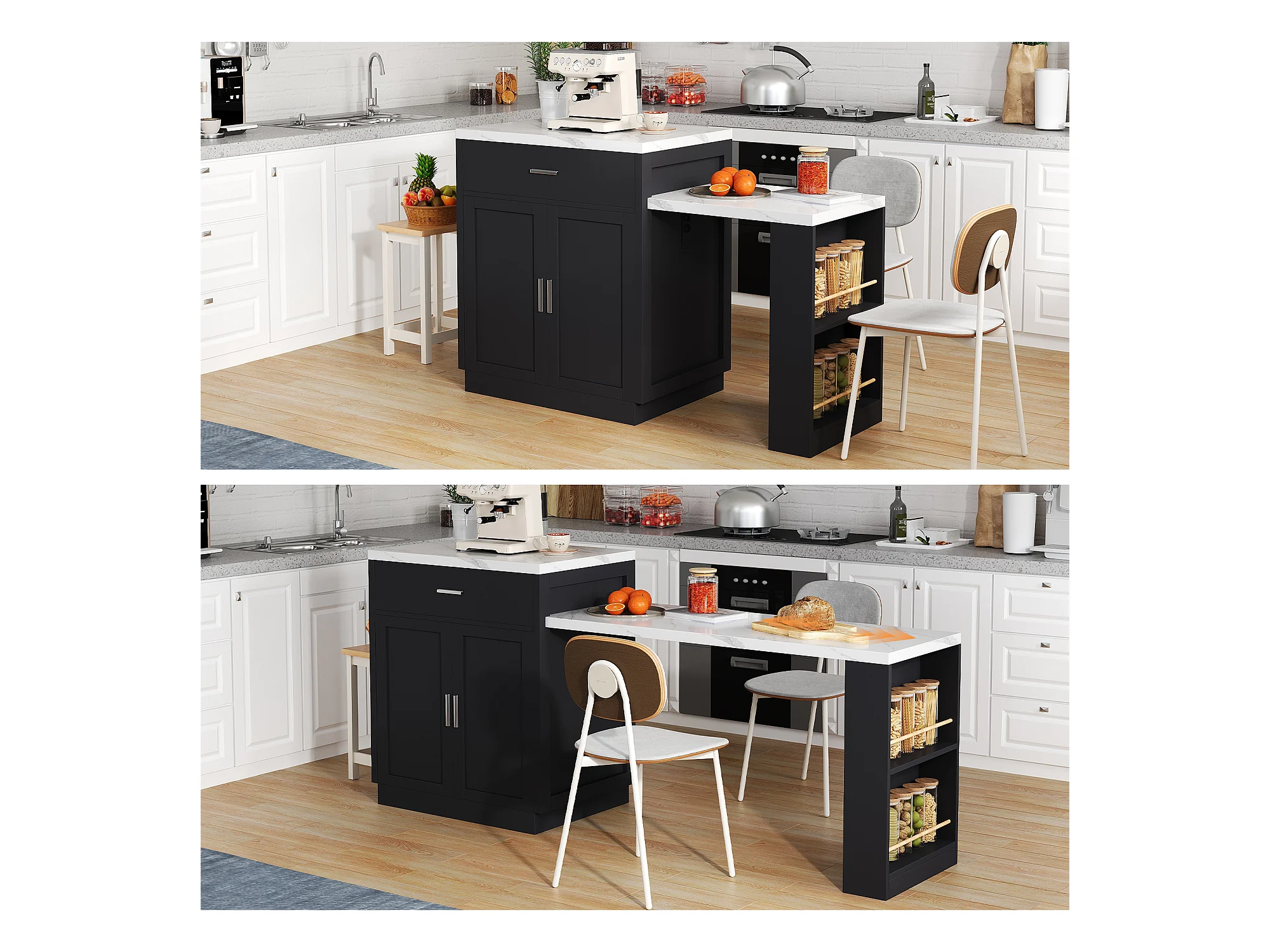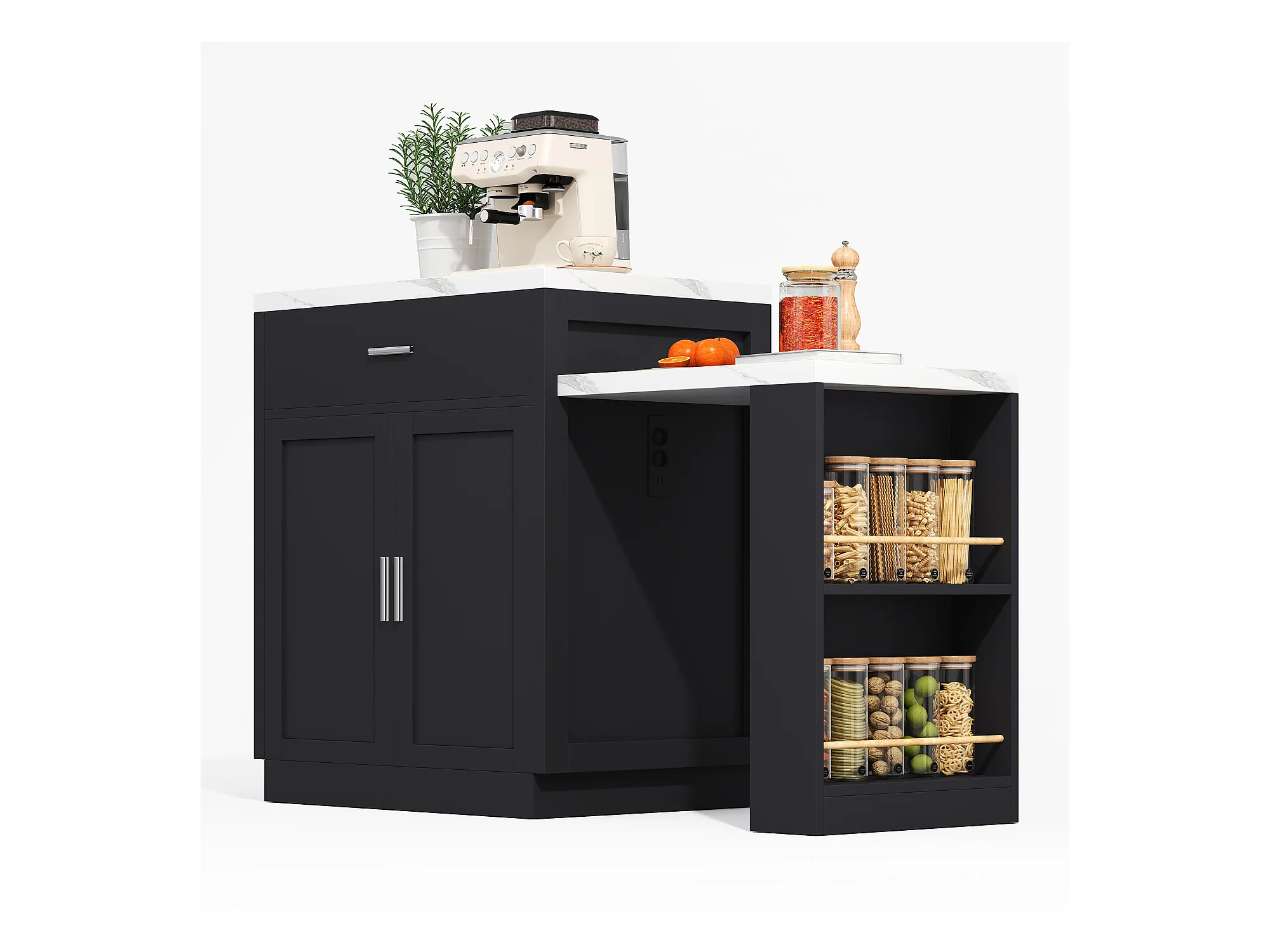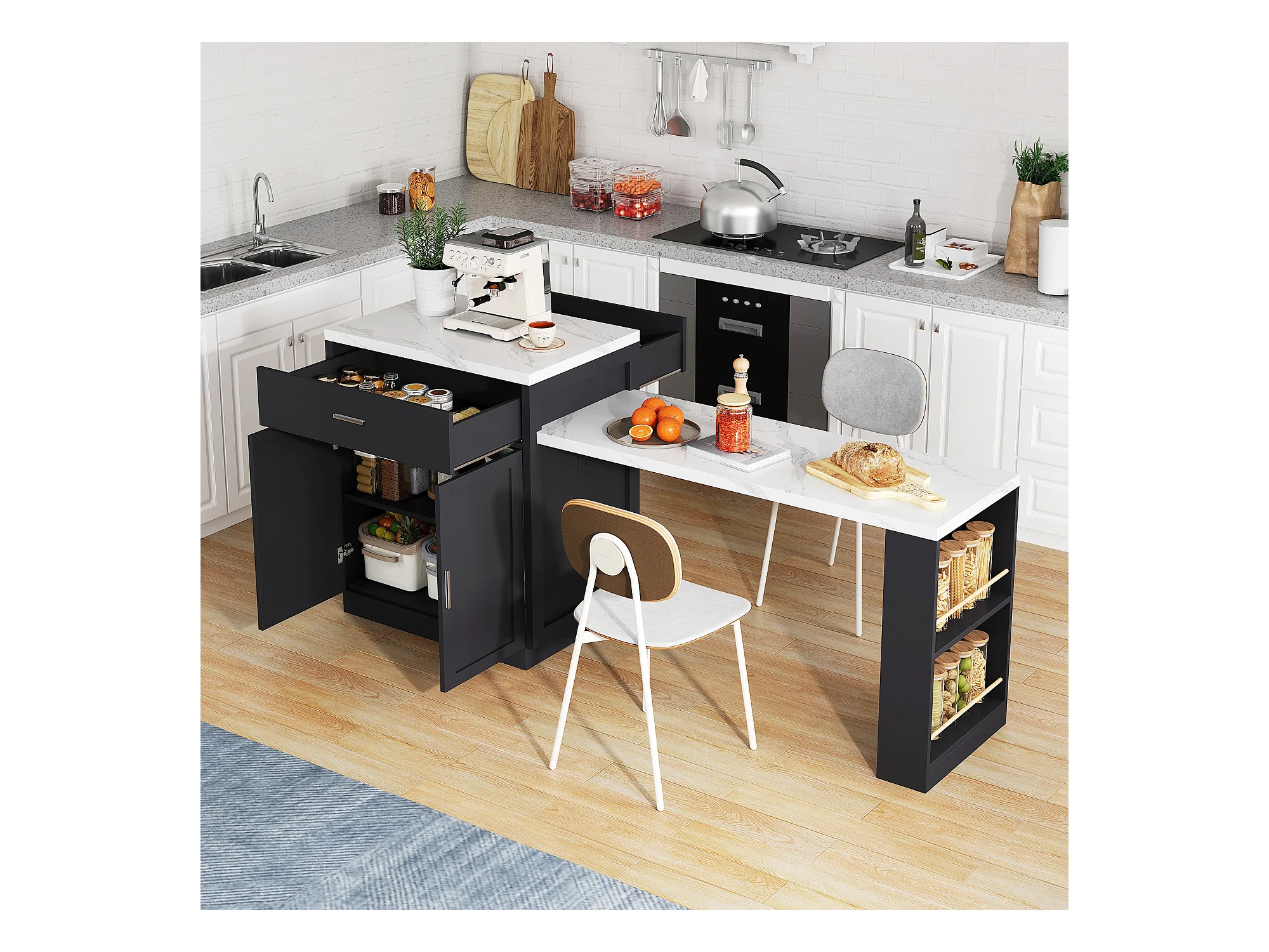 Îlot de cuisine (211x55x89.5cm)extensible 2–6 pers avec prises USB et rangements - Noir
