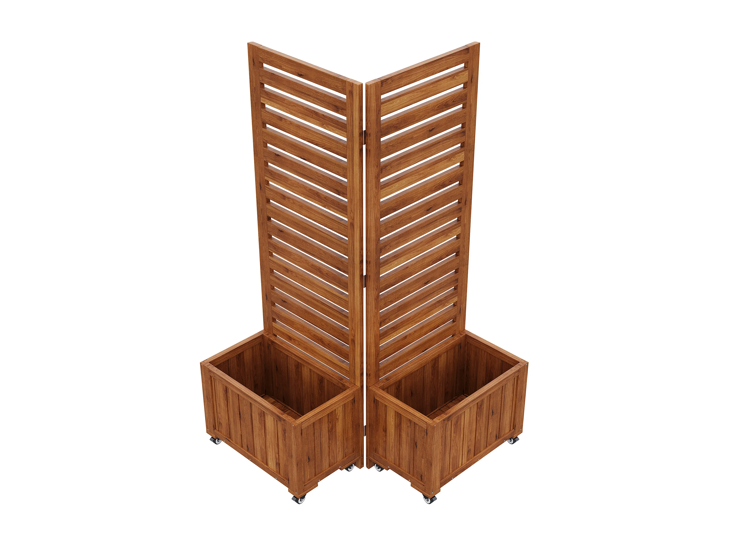 Jardinière à poser avec treillis - Avec fonction pliable et roulettes - Bois marron