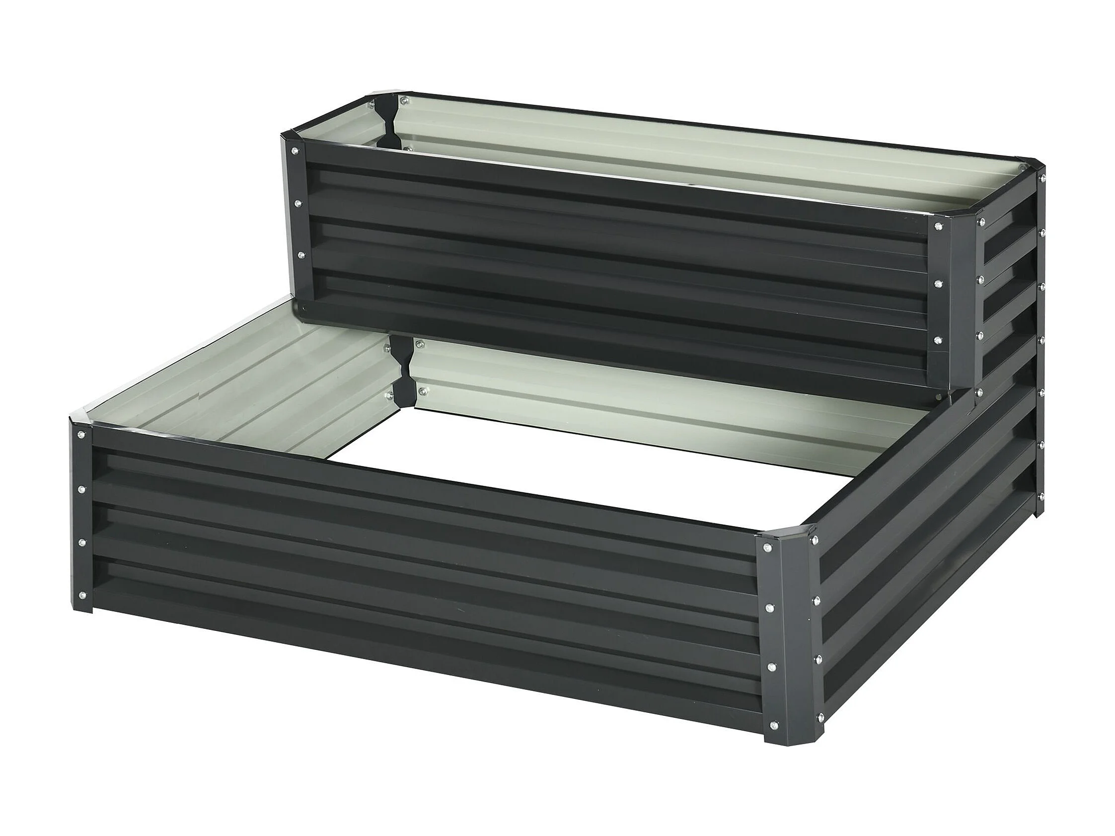 Jardinière carré potager 2 étages dim. 120L x 101l x 58H cm tôle d'acier ondulée gris foncé