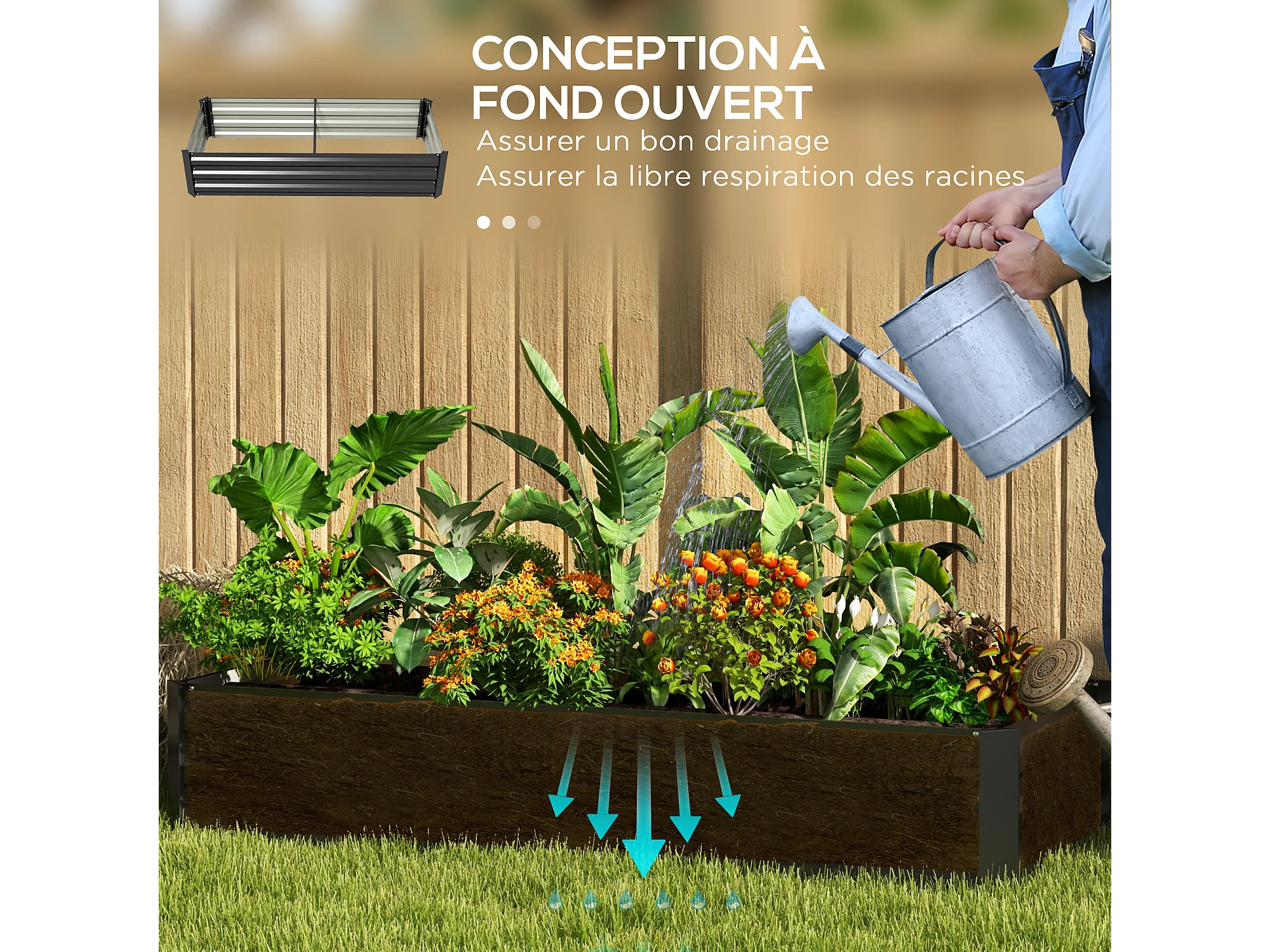 Jardinière rectangulaire carré potager dim. 150L x 70l x 30H cm acier ondulé noir