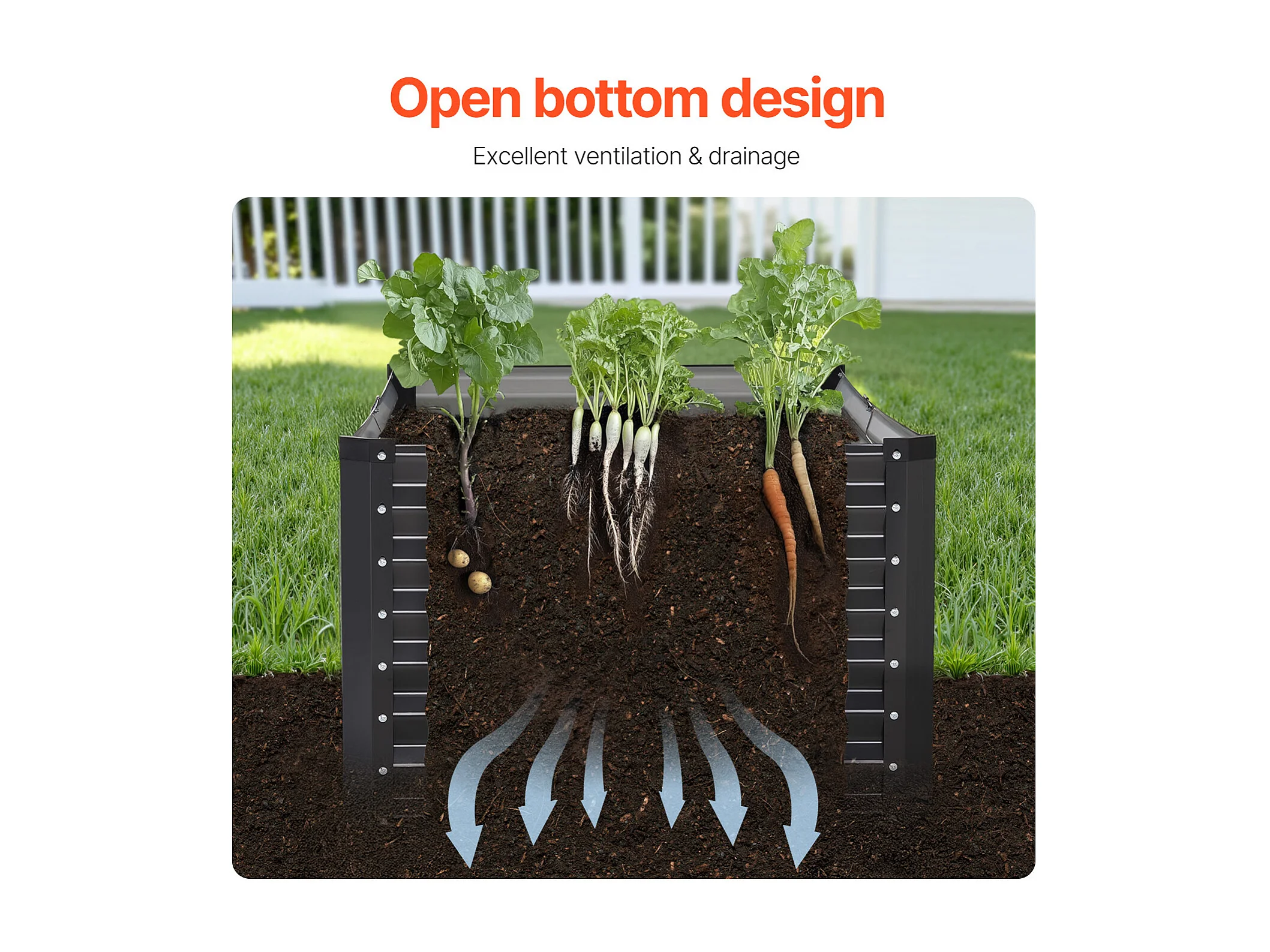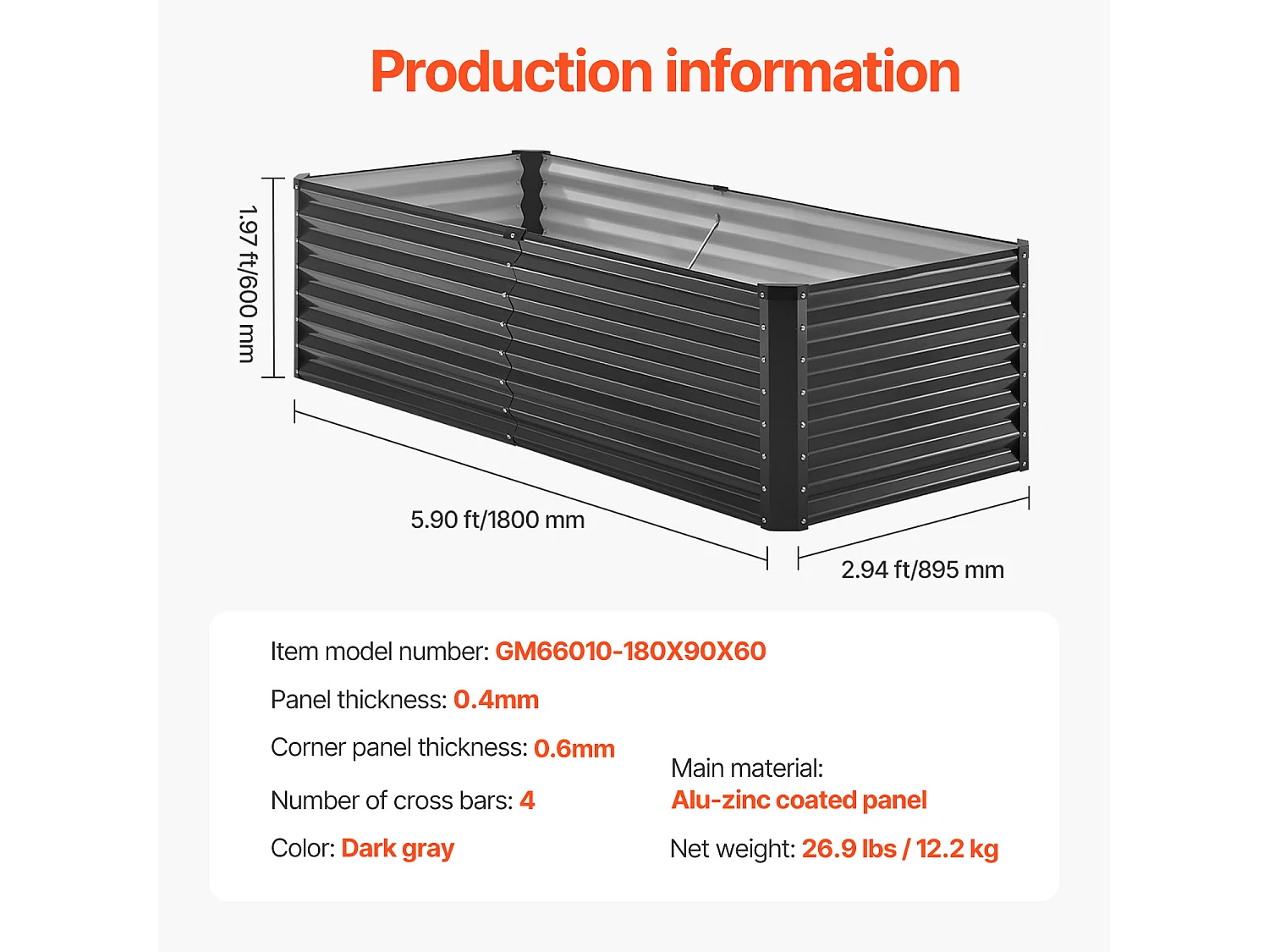 Jardinière Surélevée en Métal SucceBuy 182.88 x 91.44 x 60.96cm Jardinière d'Extérieur Galvanisée Gris Foncé