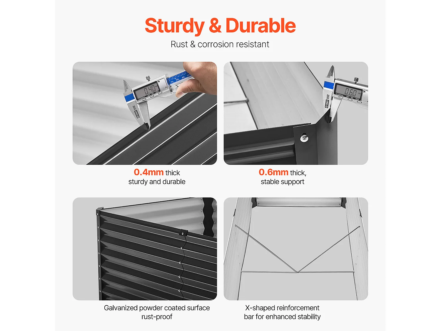 Jardinière Surélevée en Métal SucceBuy 243.84 x 60.96 x 60.96cm Galvanisée Gris Foncé