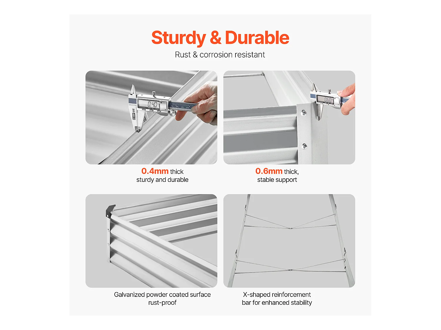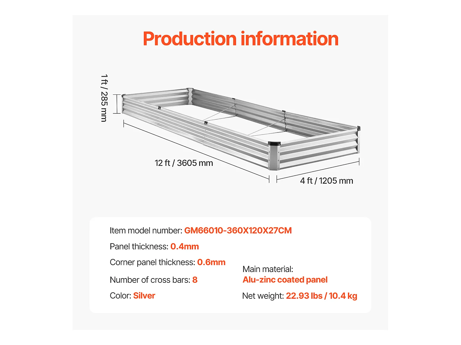 Jardinière Surélevée en Métal SucceBuy 3605 x 1205 x 285 mm pi Galvanisée pour Extérieur Argent