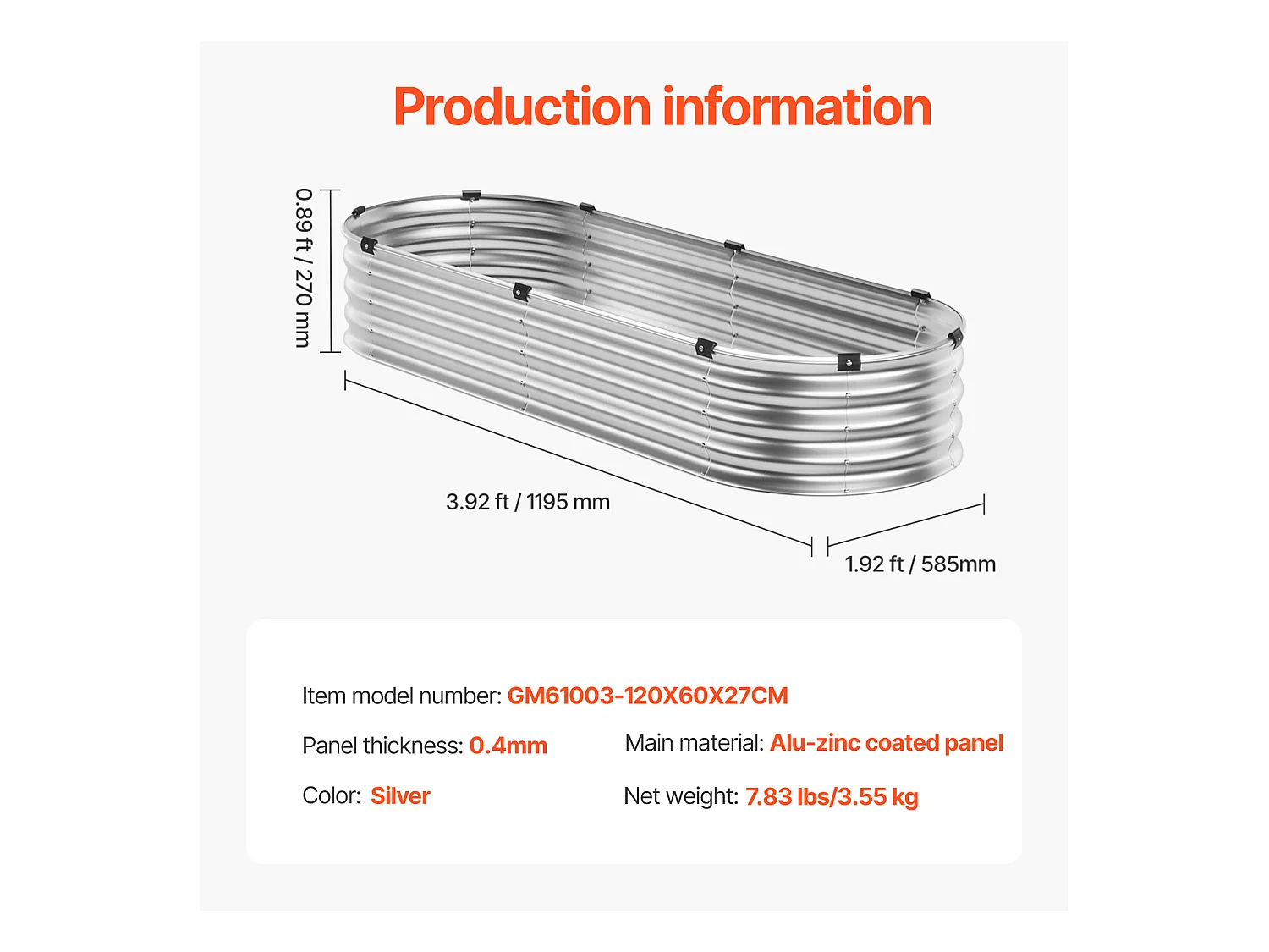 Jardinière Surélevée en Métal SucceBuy 3605 x 1205 x 285 mm pi Galvanisée pour Extérieur Argent