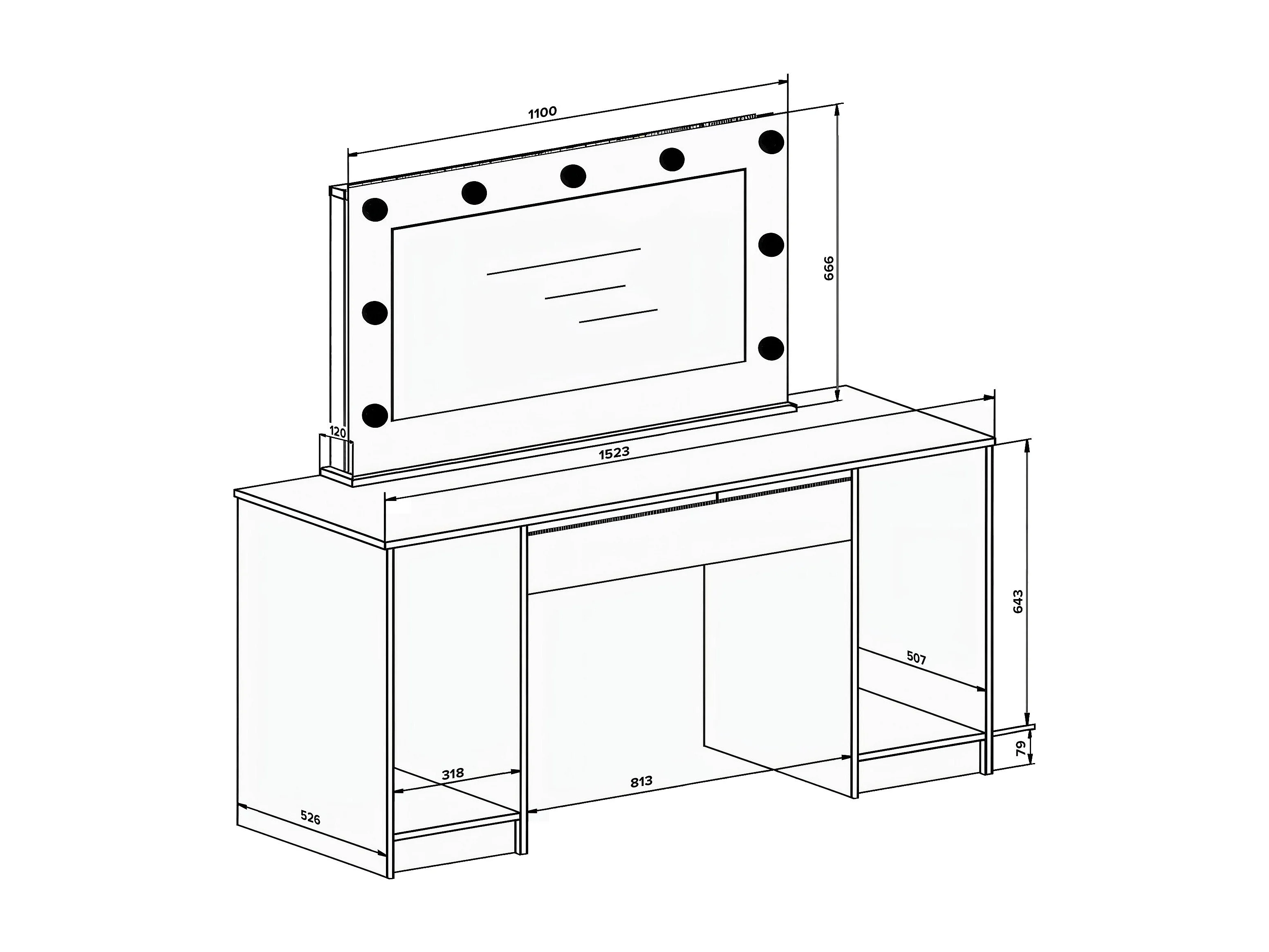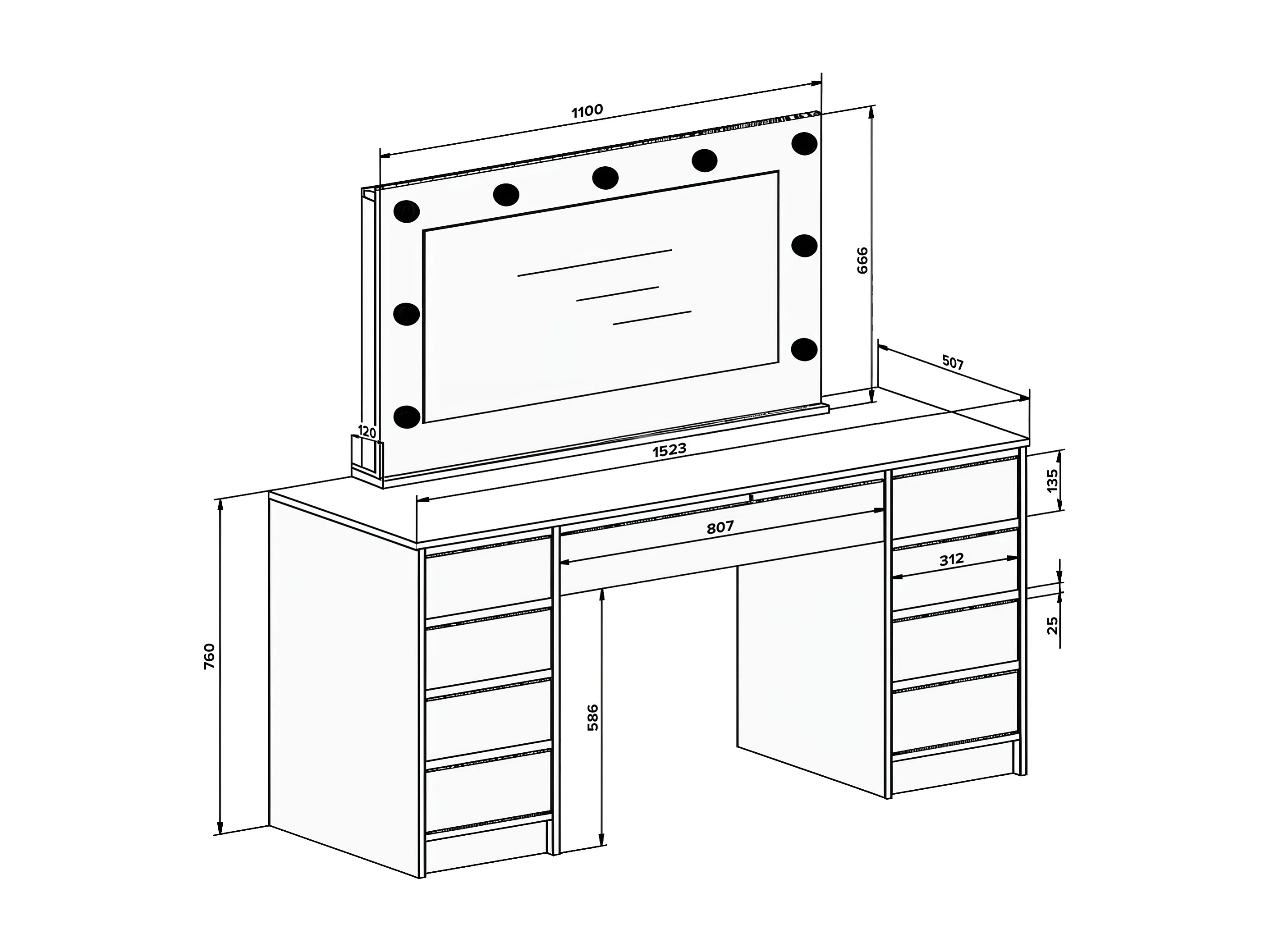 Coiffeuse double avec miroir à LEDs - 9 tiroirs - Blanc brillant - JENEMI