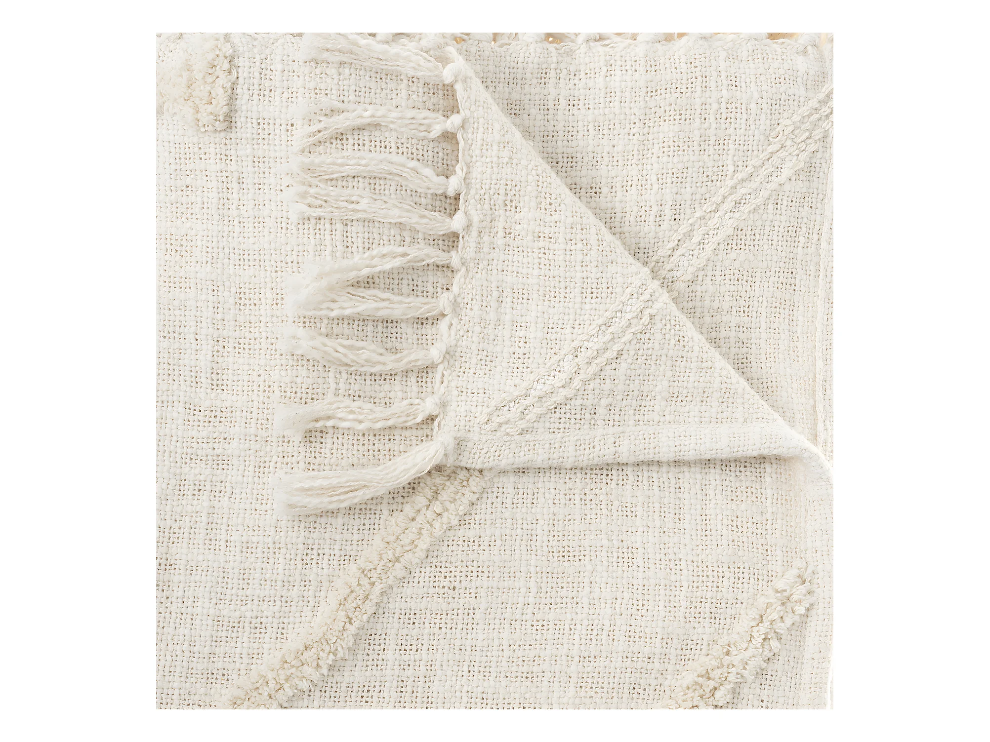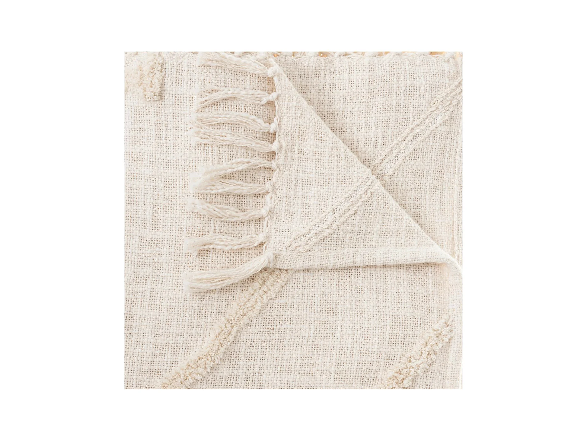 Jeté de Lit en Coton Ivoire motif Inca tufté 130 x 180 cm
