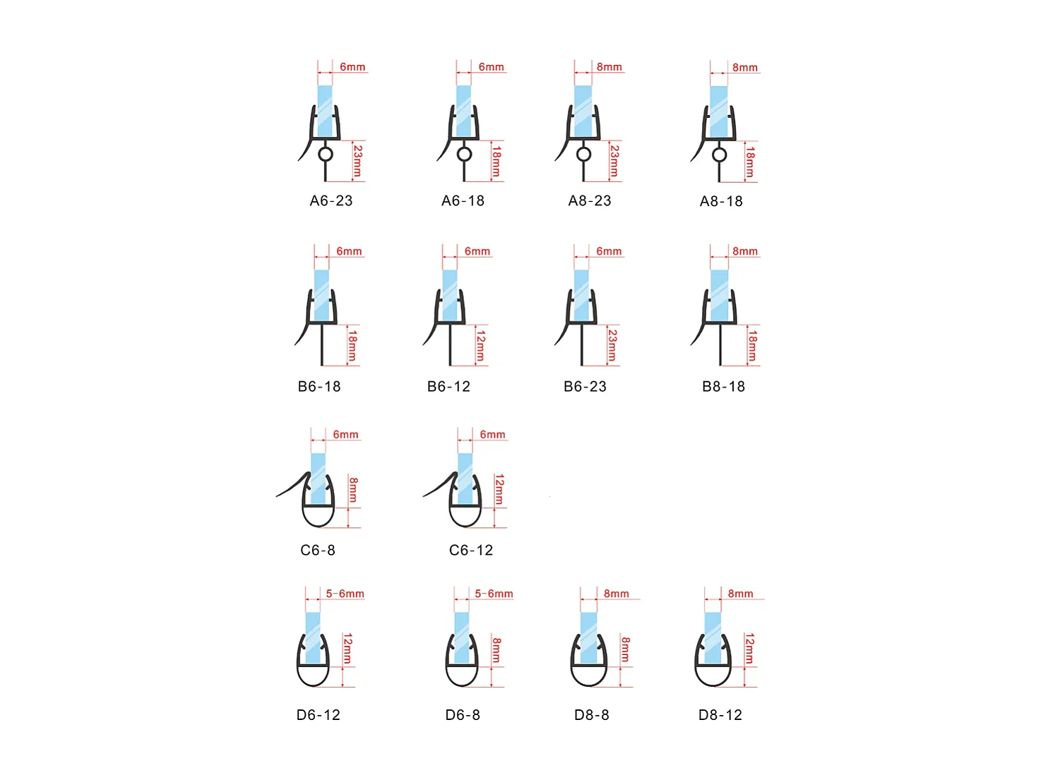 Joint d'étanchéité pour porte de douche en 90cm pour la vitre - pour la vitre 8 mm - transparent