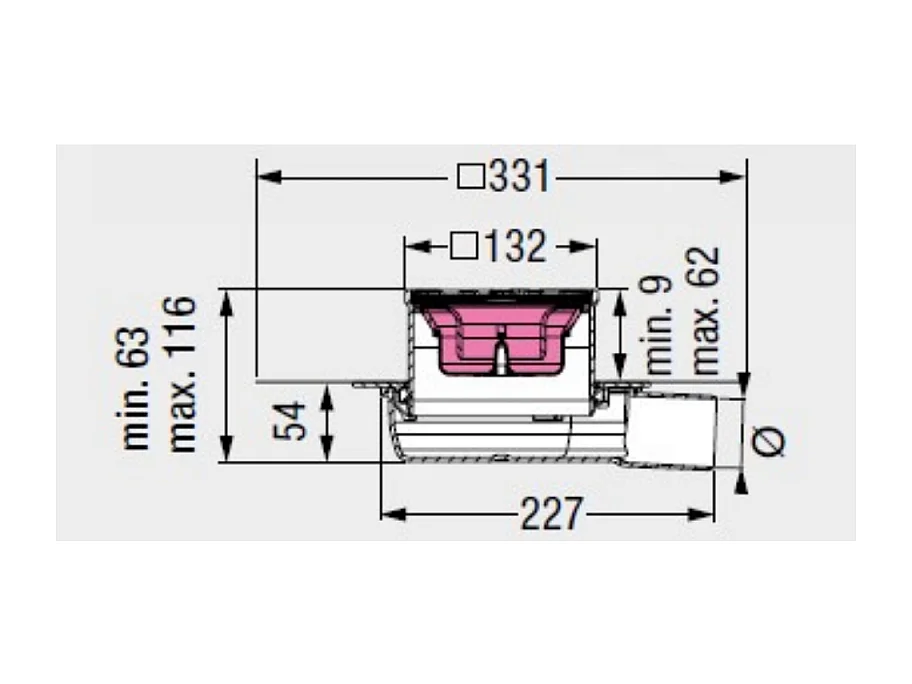 Bonde de douche sortie horizontale WEDI avec grille carrée