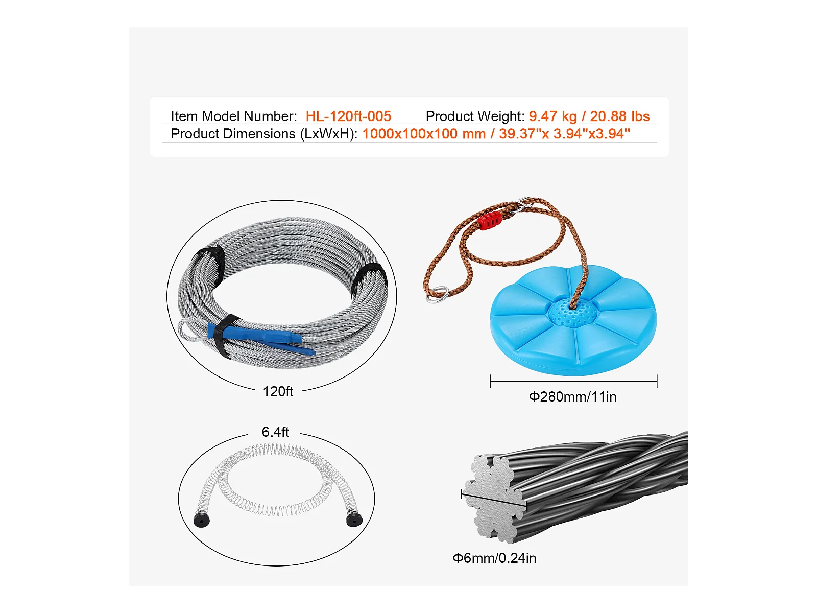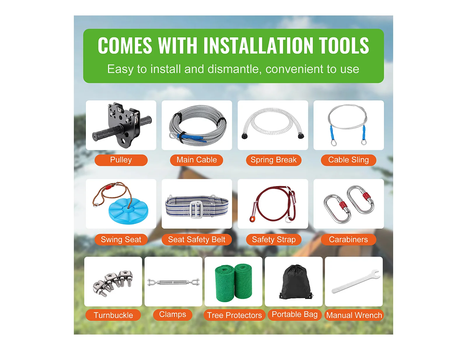 Kit Complet Tyrolienne, SucceBuy Kit de Tyrolienne de 3657.6 CM pour Enfants et Adultes Jusqu'à 500 lb