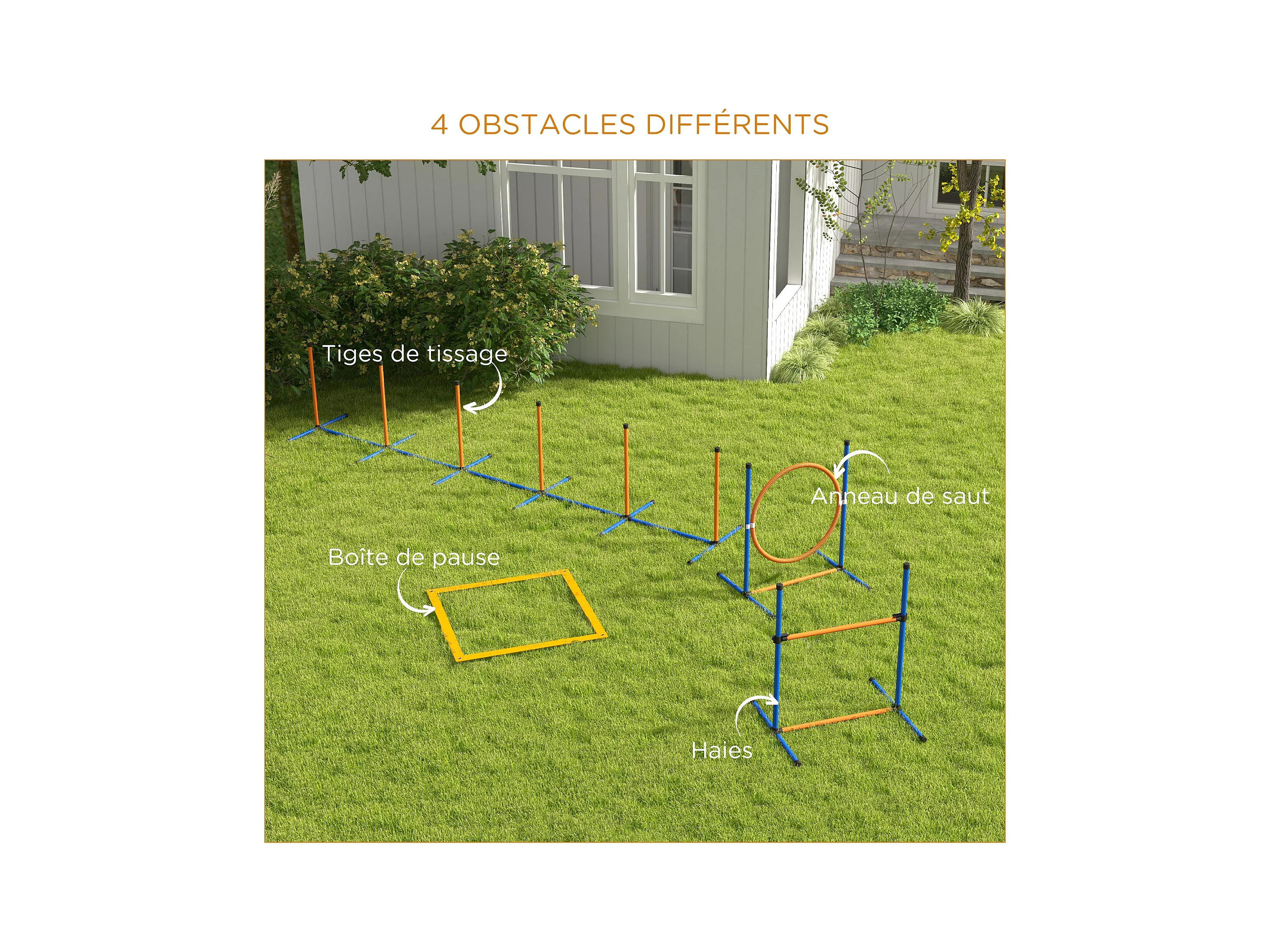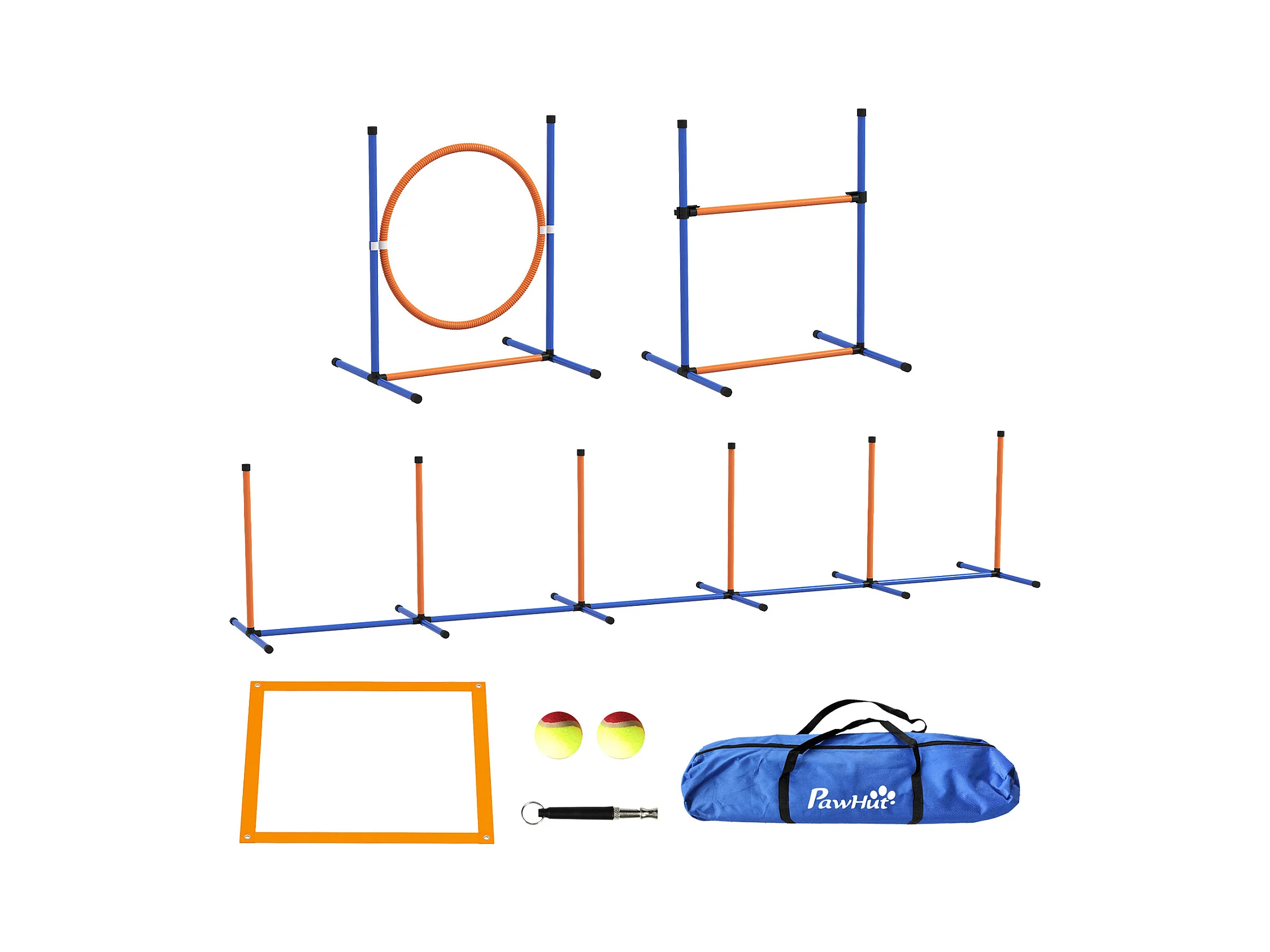 Kit d'agilité complet pour chien - slalom, anneau de saut, haies et accessoires