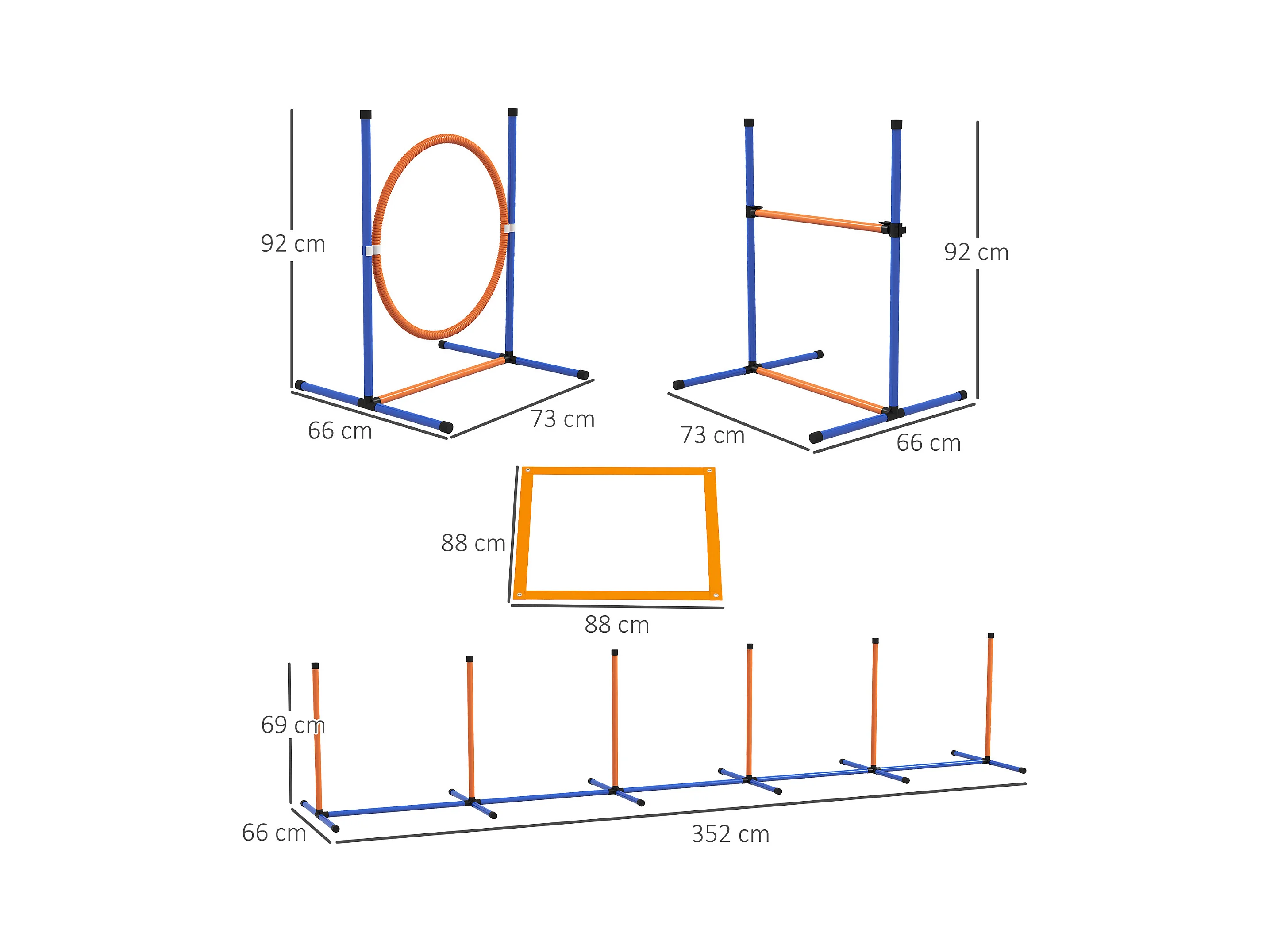 Agility sport pour chiens équipement complet obstacles et entrainement 11 pièces avec sac de transport acier rouge et bleu