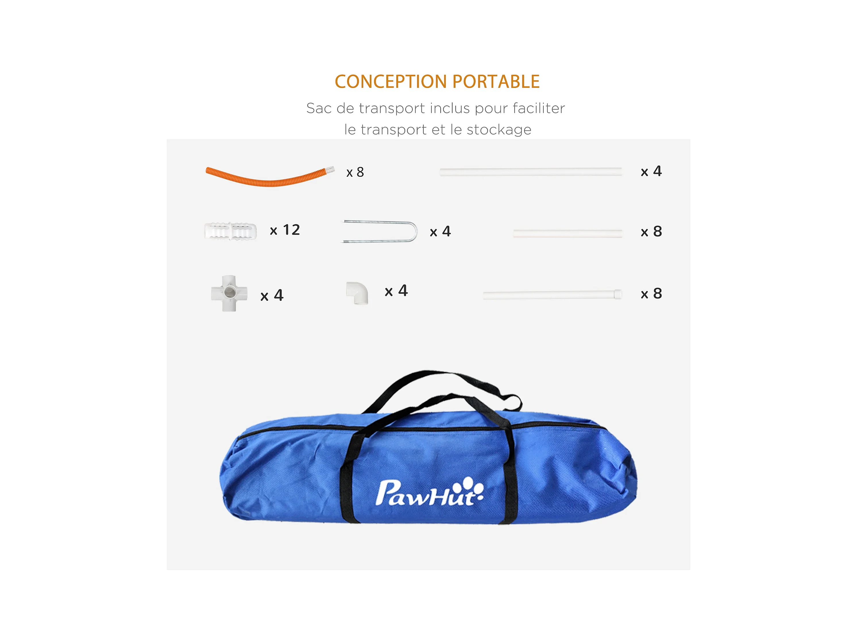 Agility sport pour chiens équipement complet obstacles et entrainement 11 pièces avec sac de transport acier rouge et bleu