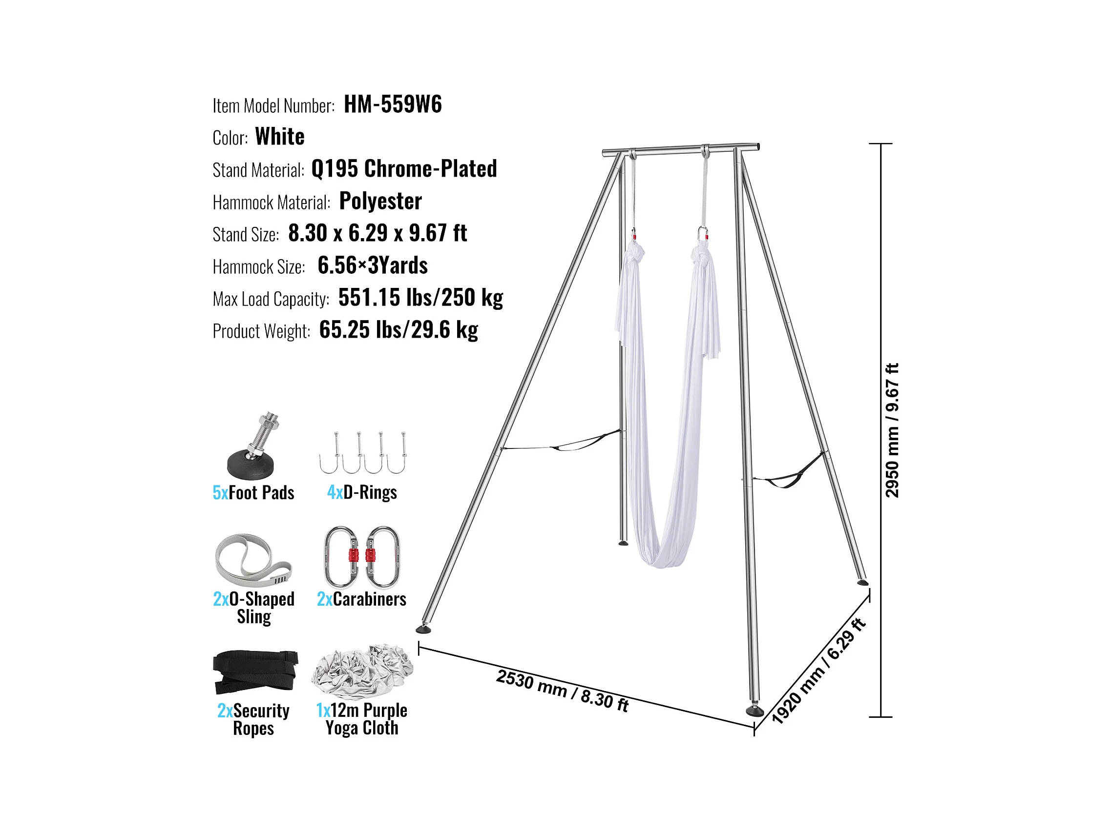 Kit de Balançoire de Yoga SucceBuy, avec Support et Hamac en Soie Aérienne, Capacité de 250 kg, Cadre de Yoga Blanc