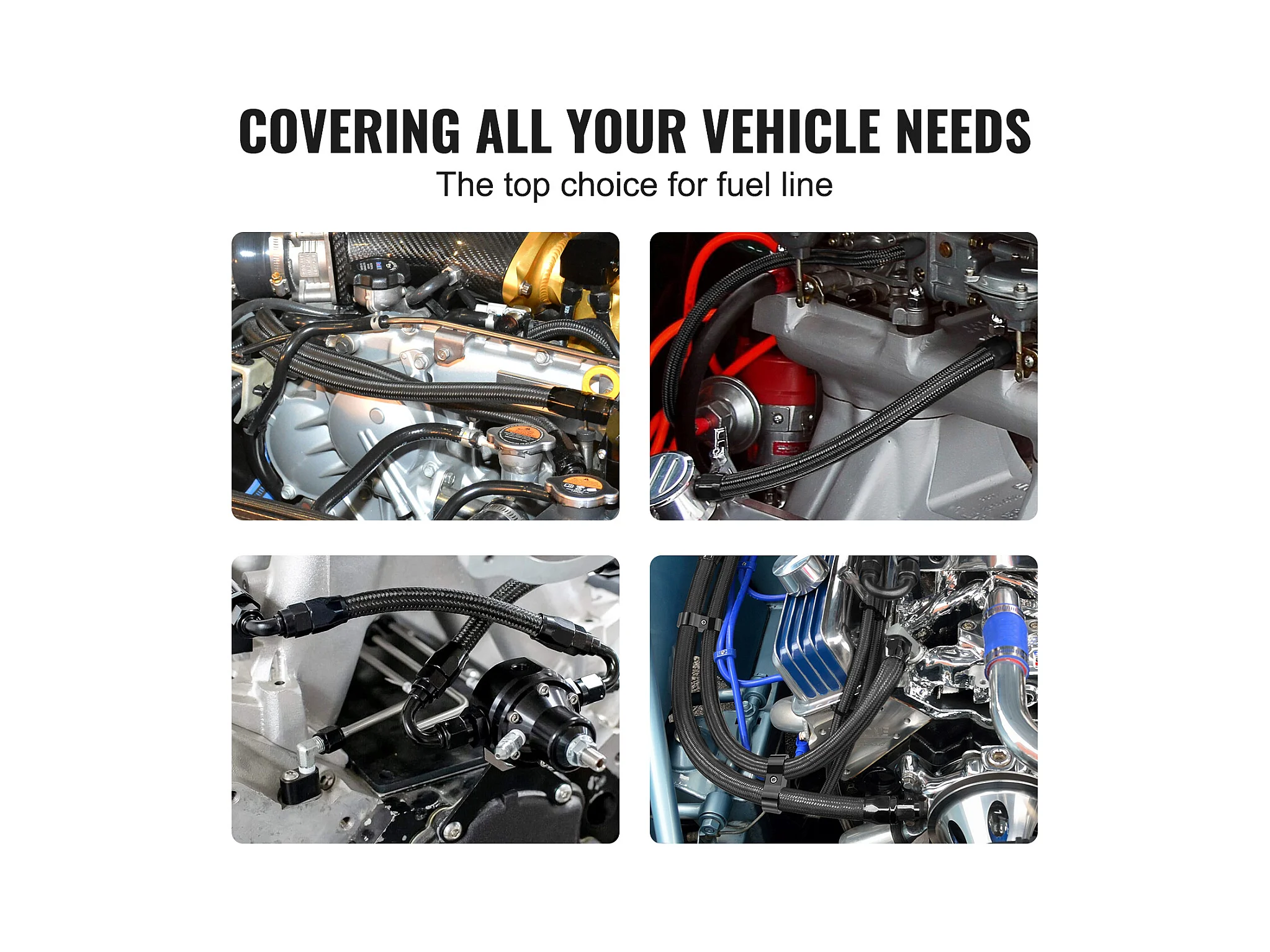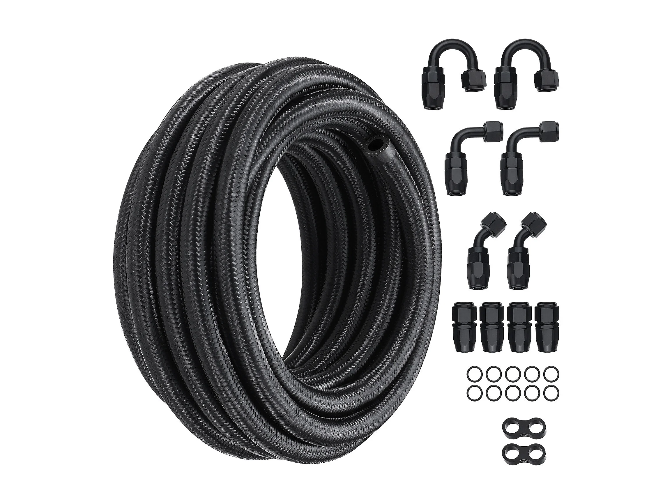 Kit de Conduite SucceBuy de Carburant 8AN 610cm, Tressé en Nylon et Acier Inoxydable avec 12 Raccords