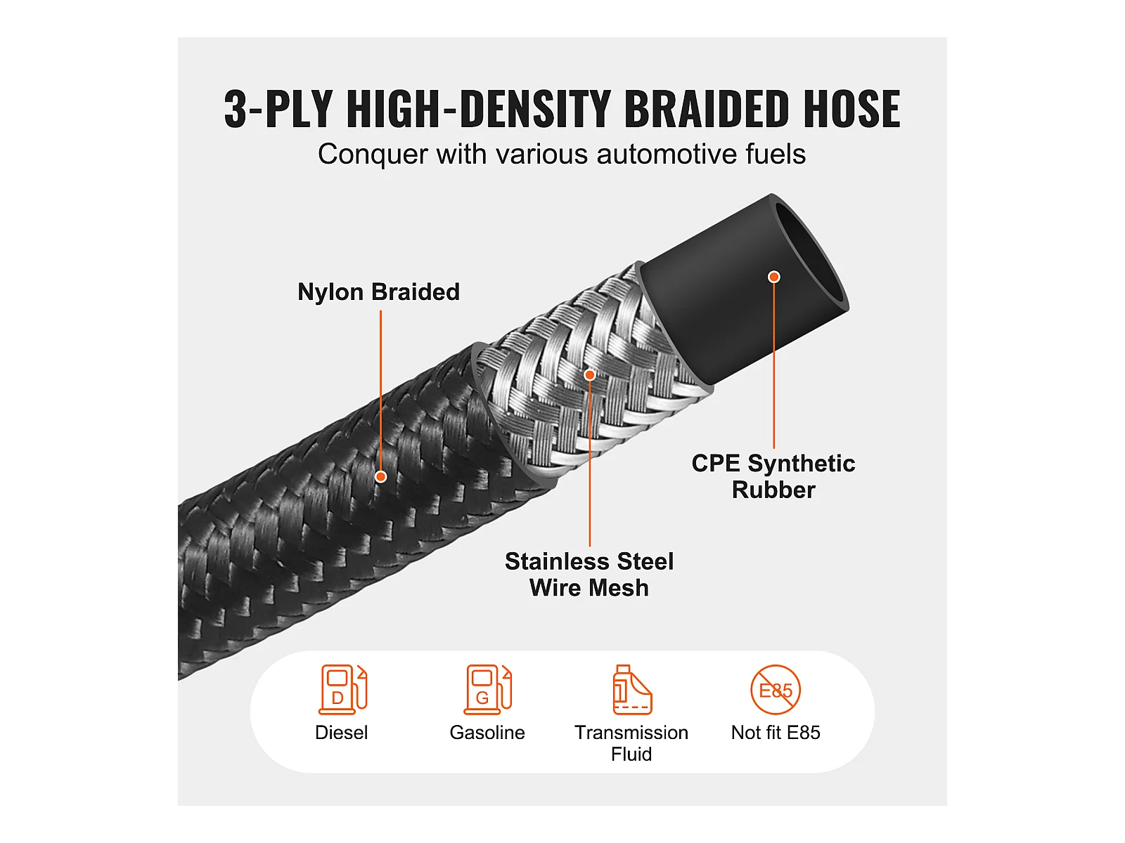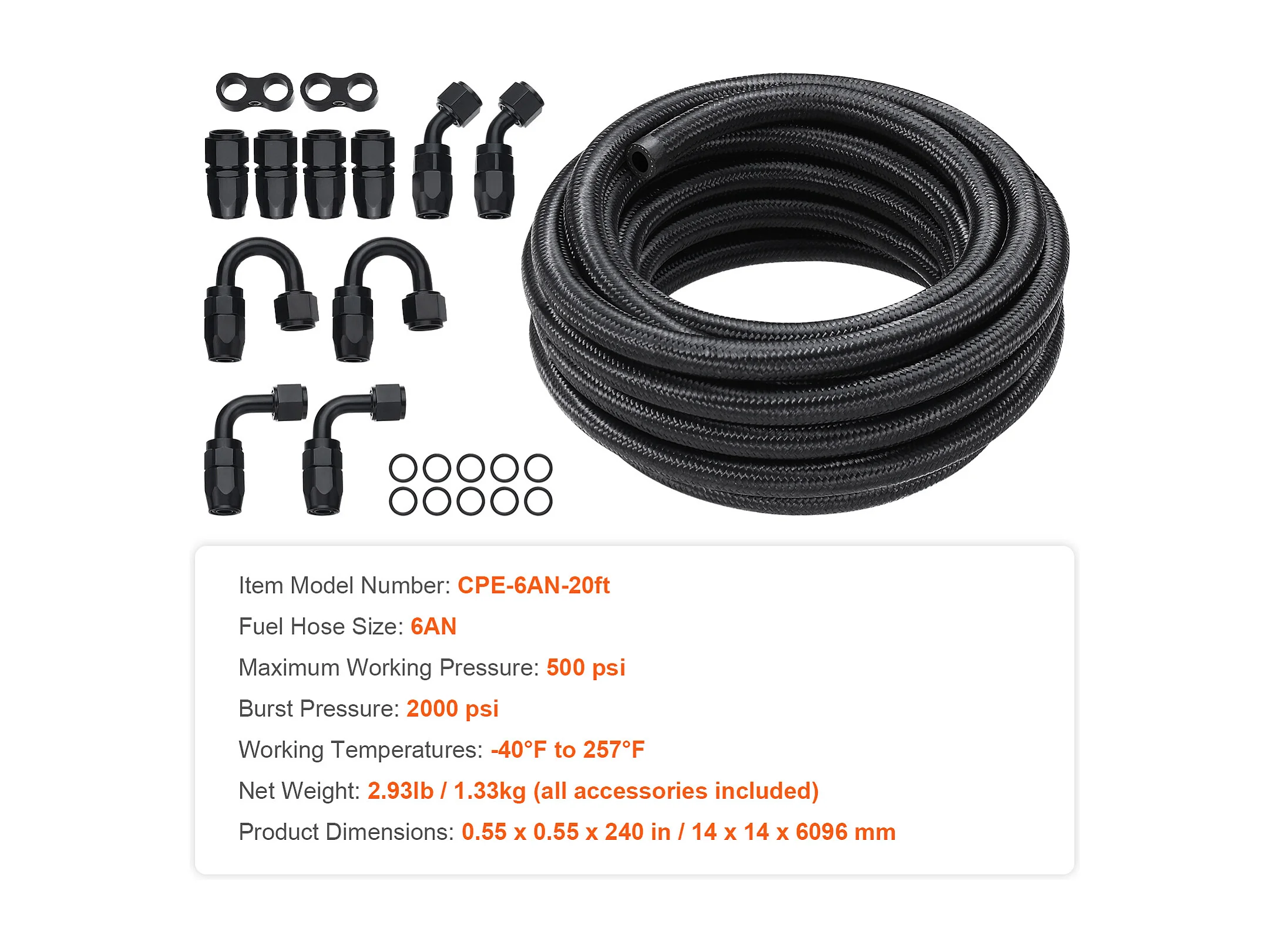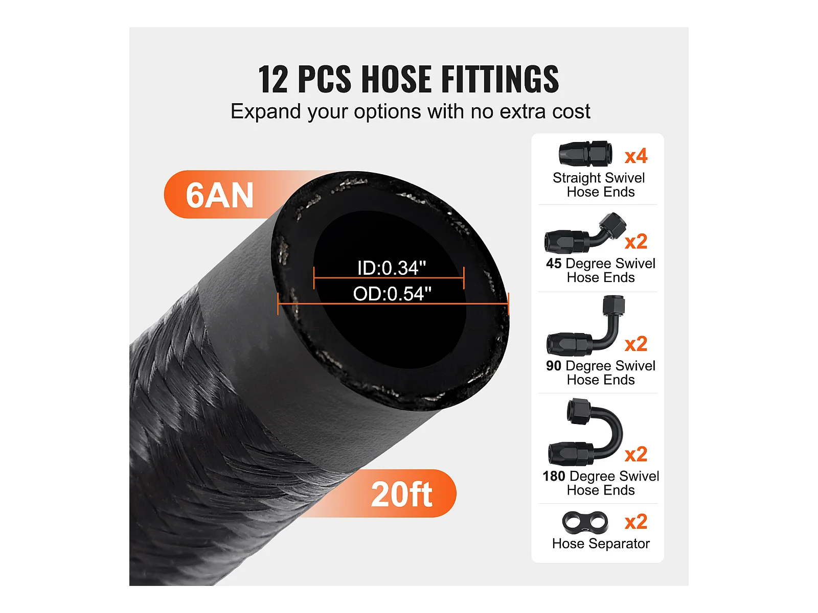 Kit de Conduite de Carburant SucceBuy 6AN 610cm en Acier Inoxydable Tressé en Nylon 12 Raccords de Tuyau