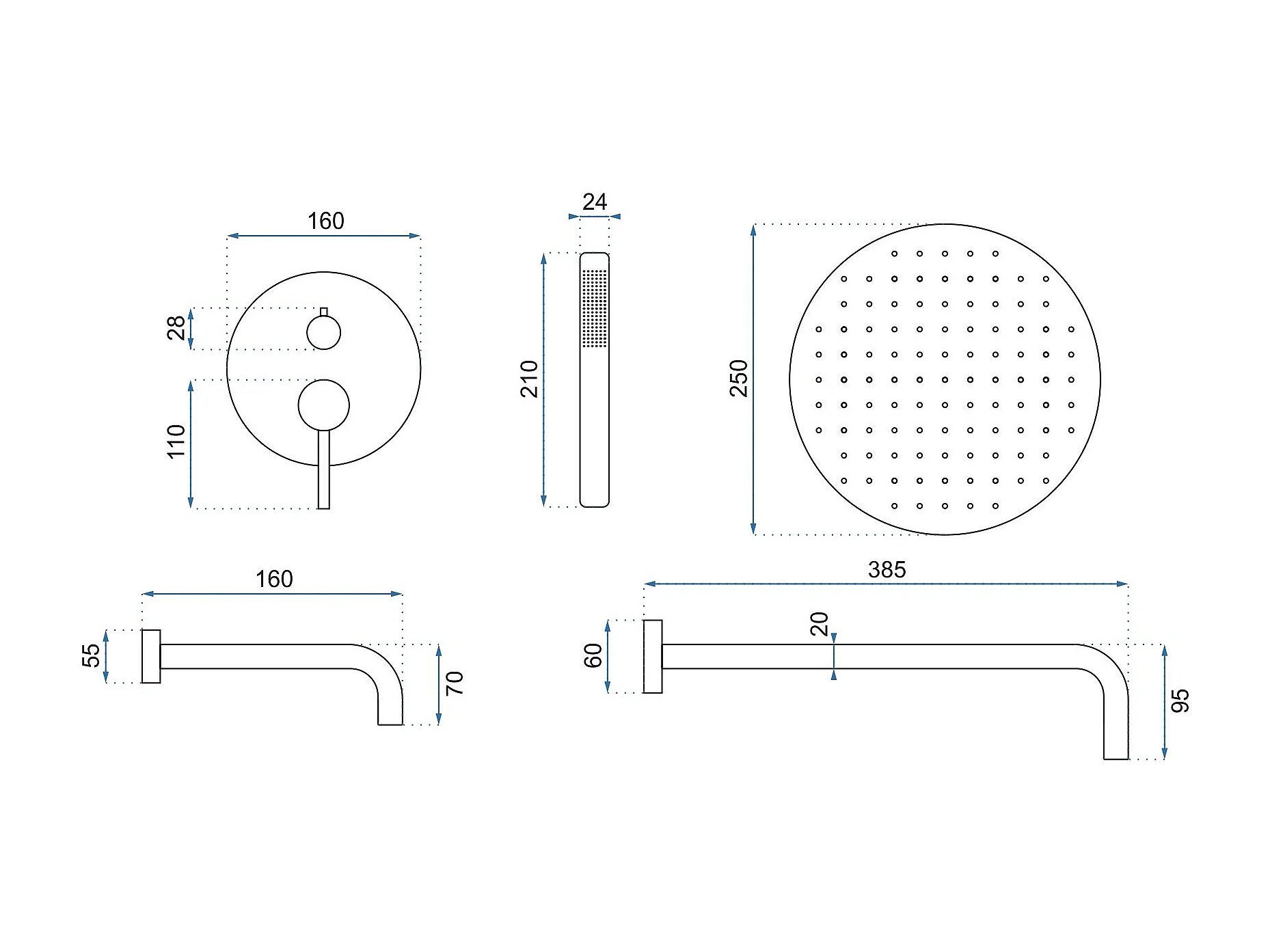 Colonne De Douche-Baignoire Encastrée Rea Lungo Gold