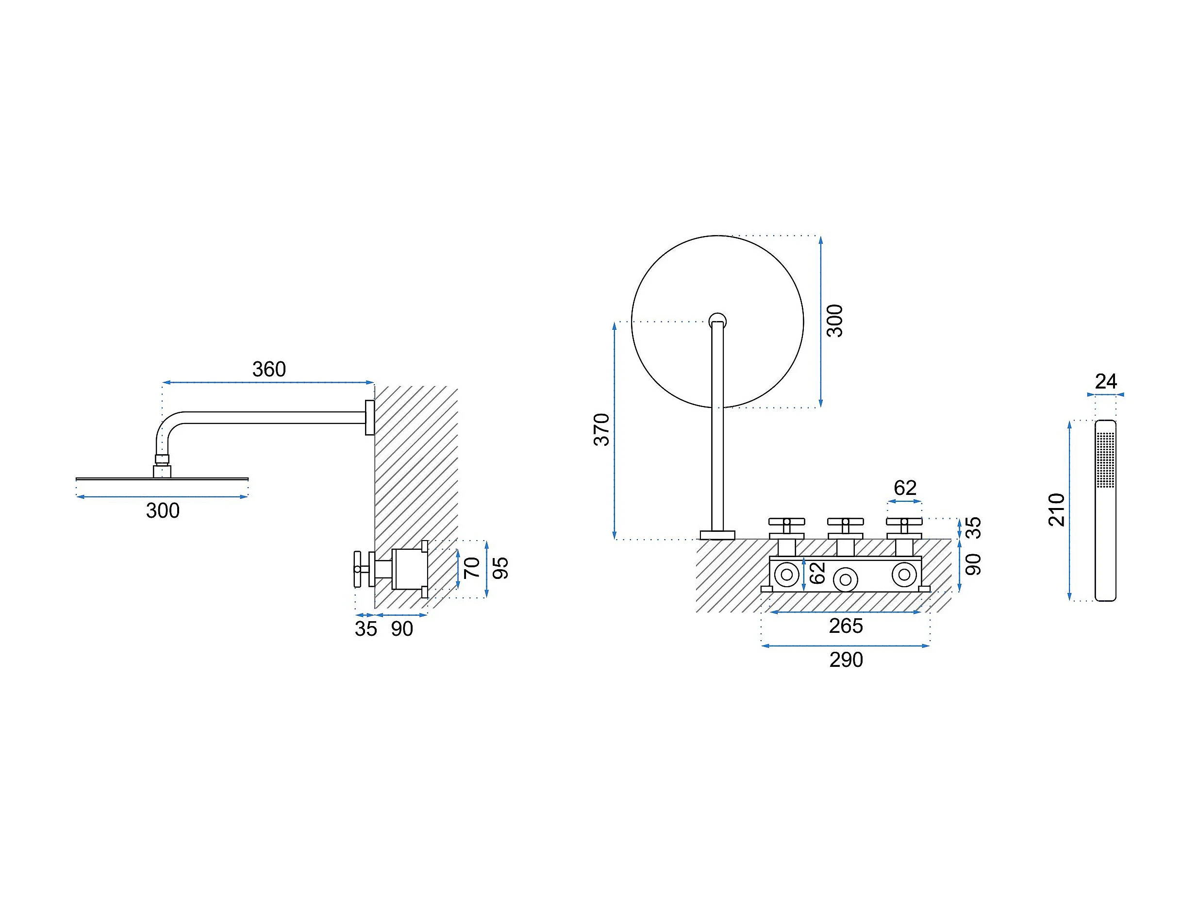 Ensemble de douche avec mitigeur et douche de pluie TAGBO Noir