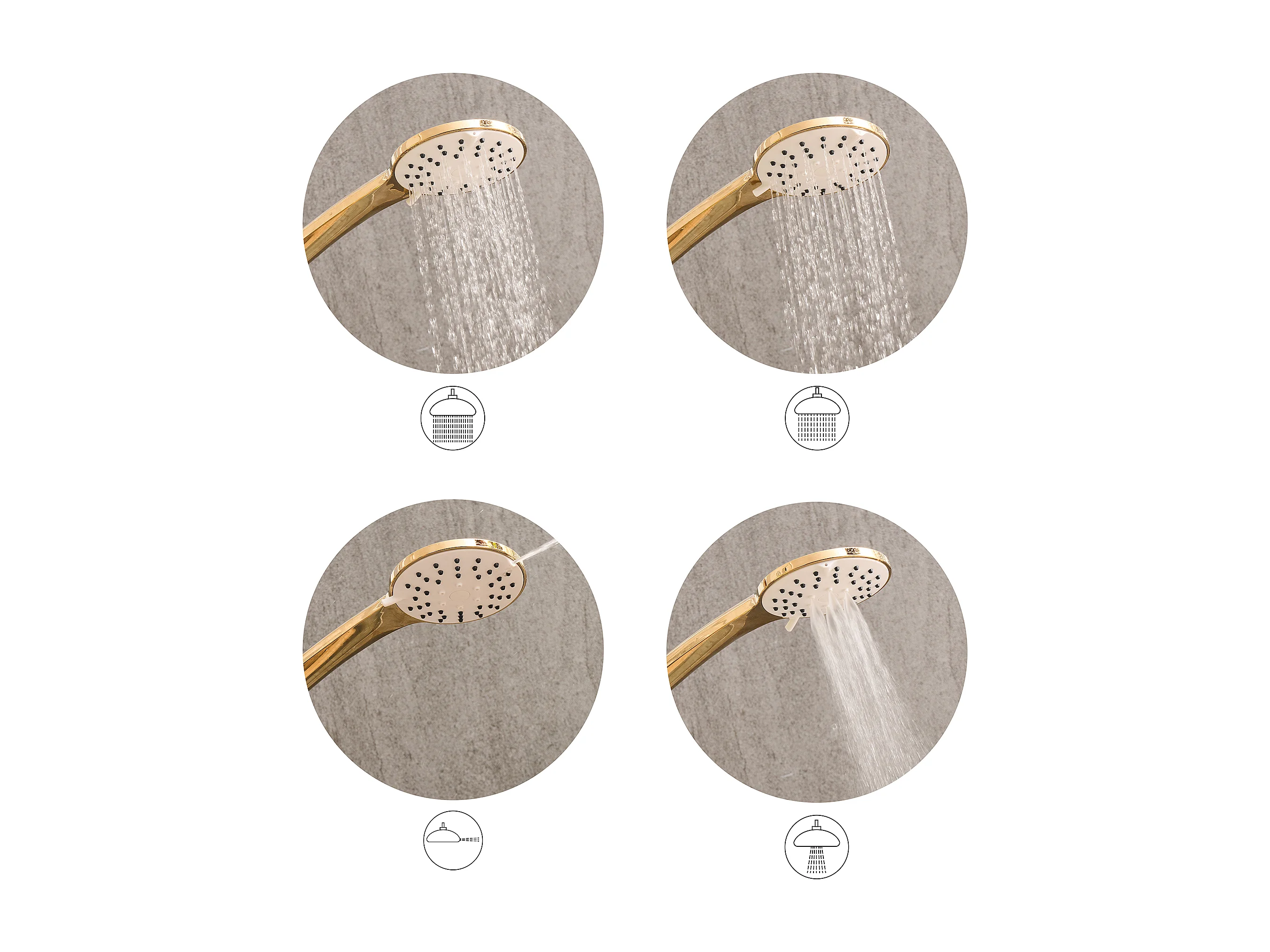 Kit de pommeau de douche avec tuyau flexible CHURUN 4 modes Argenté