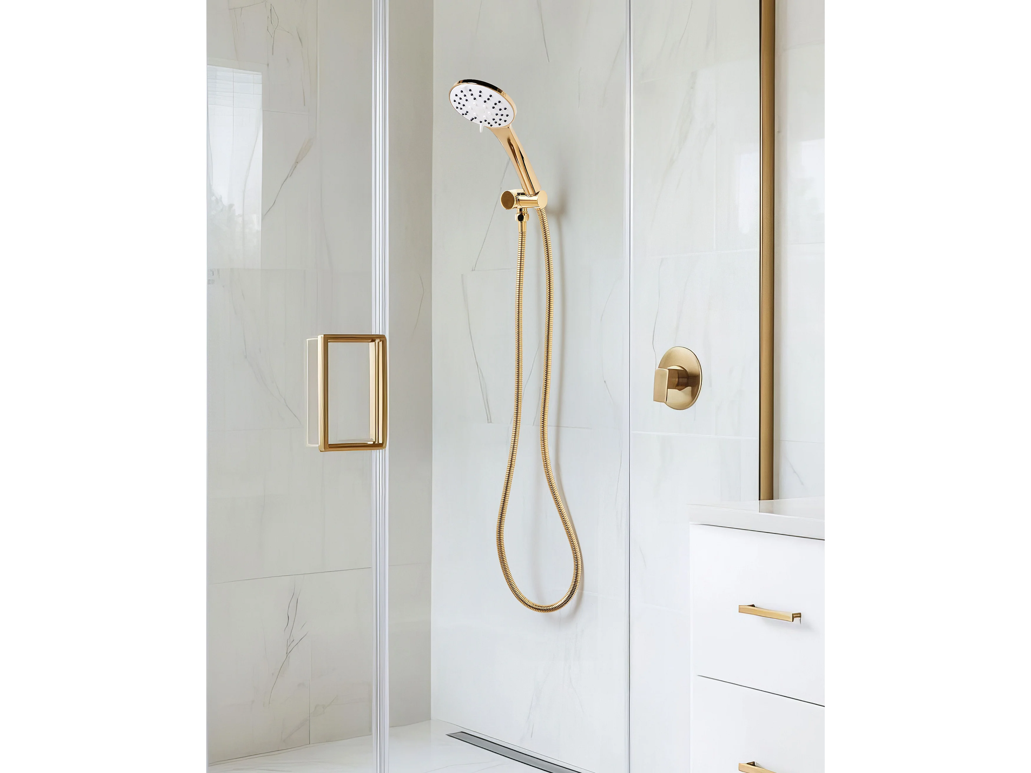 Kit de pommeau de douche avec tuyau flexible TUMPLE 3 modes Doré