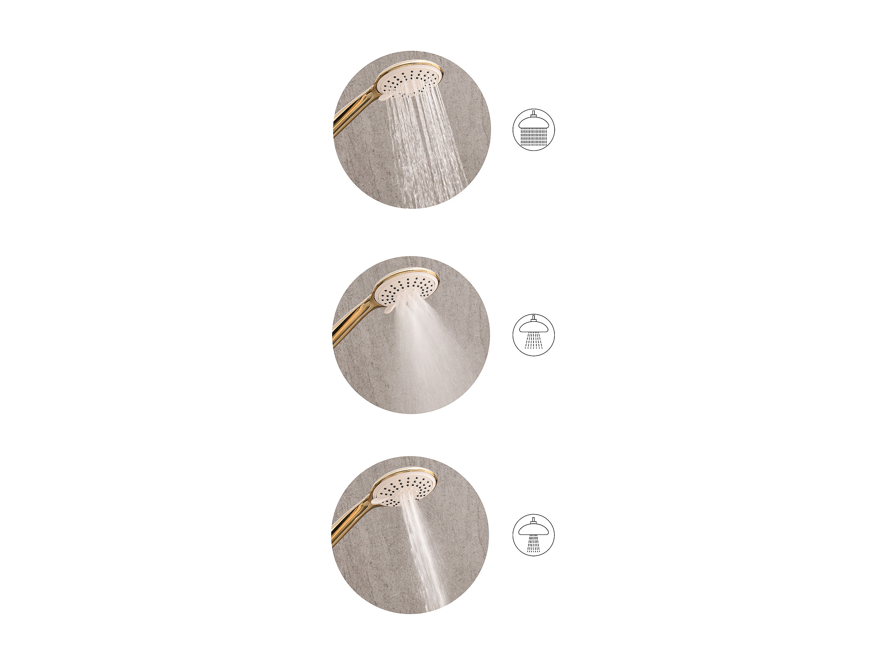 Kit de pommeau de douche avec tuyau flexible TUMPLE 3 modes Doré