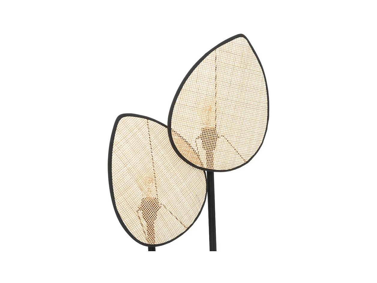 Lampadaire 2 abat-jours en Cannage de Rotin et métal Noir H 143 cm