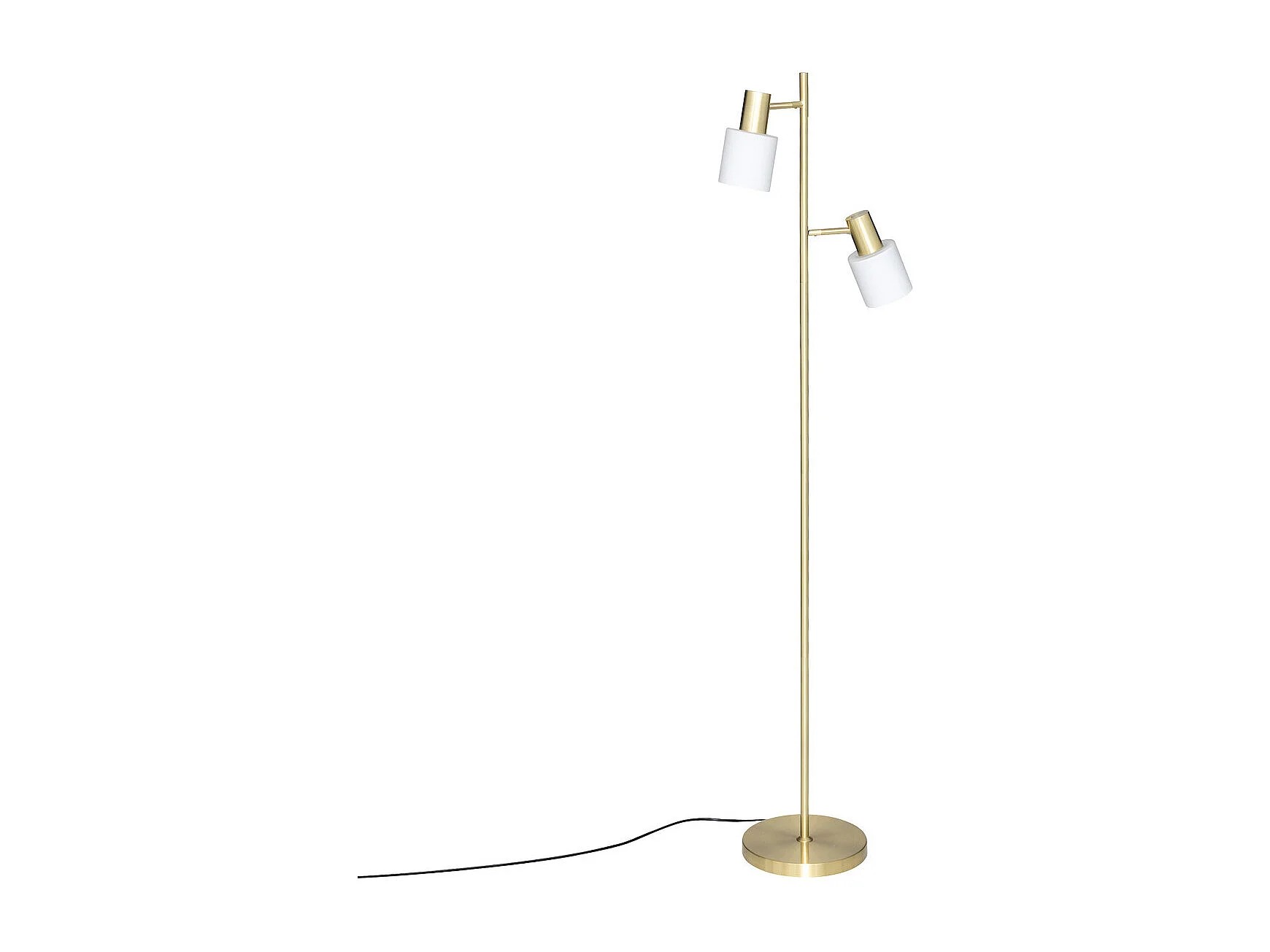 Lampadaire en métal Doré et 2 abat-jours en verre Blanc H 143 cm