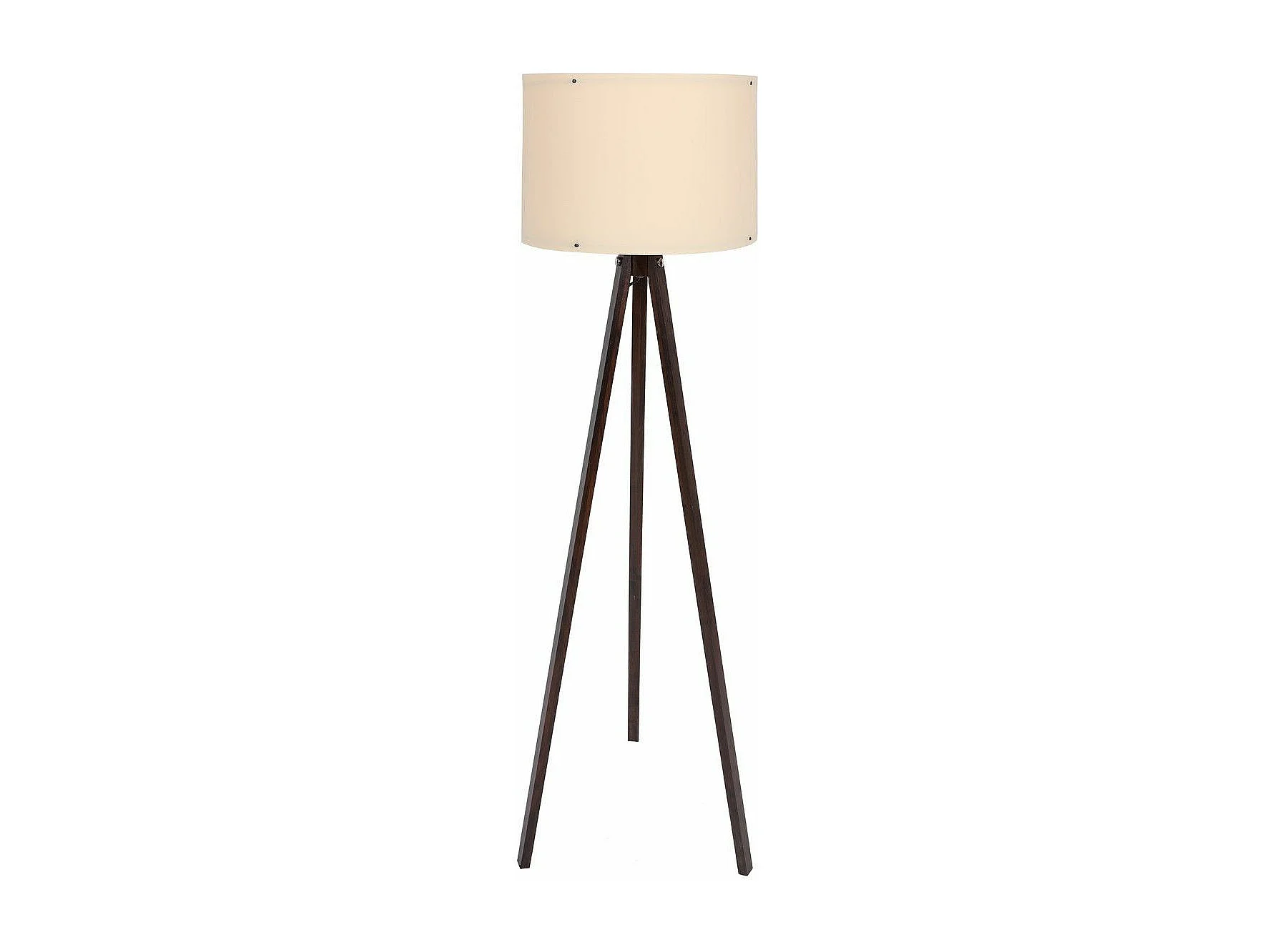 Lampadaire trépied Luca 145cm Tissu Blanc Blanc créme et Bois Marron