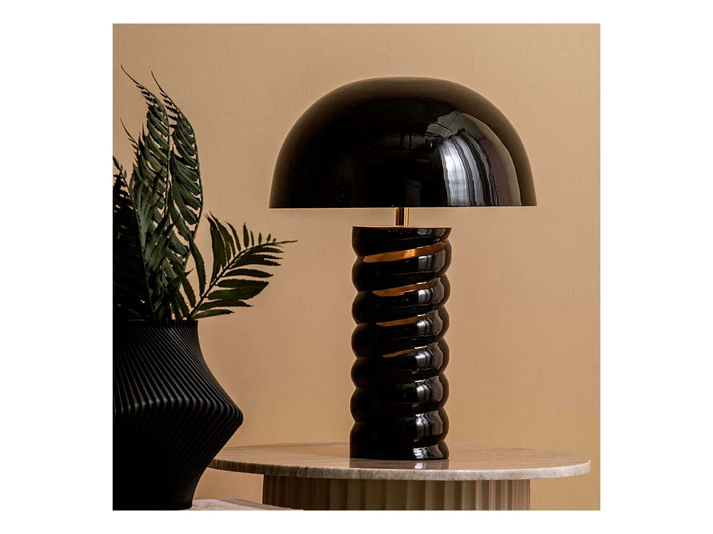 Waved Dome - Lampe à poser en métal et marbre - Noir