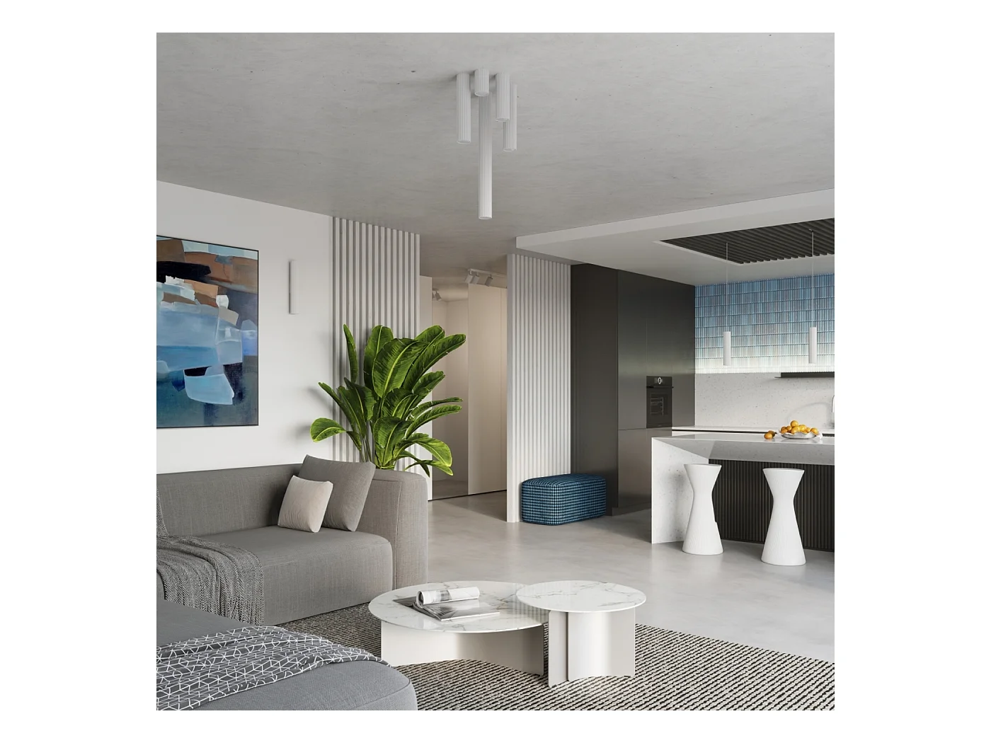 Lampe À Suspension Karbon Minimaliste En Aluminium - 3 Sources Lumineuses - L.45 X H.98 Cm - Blanc