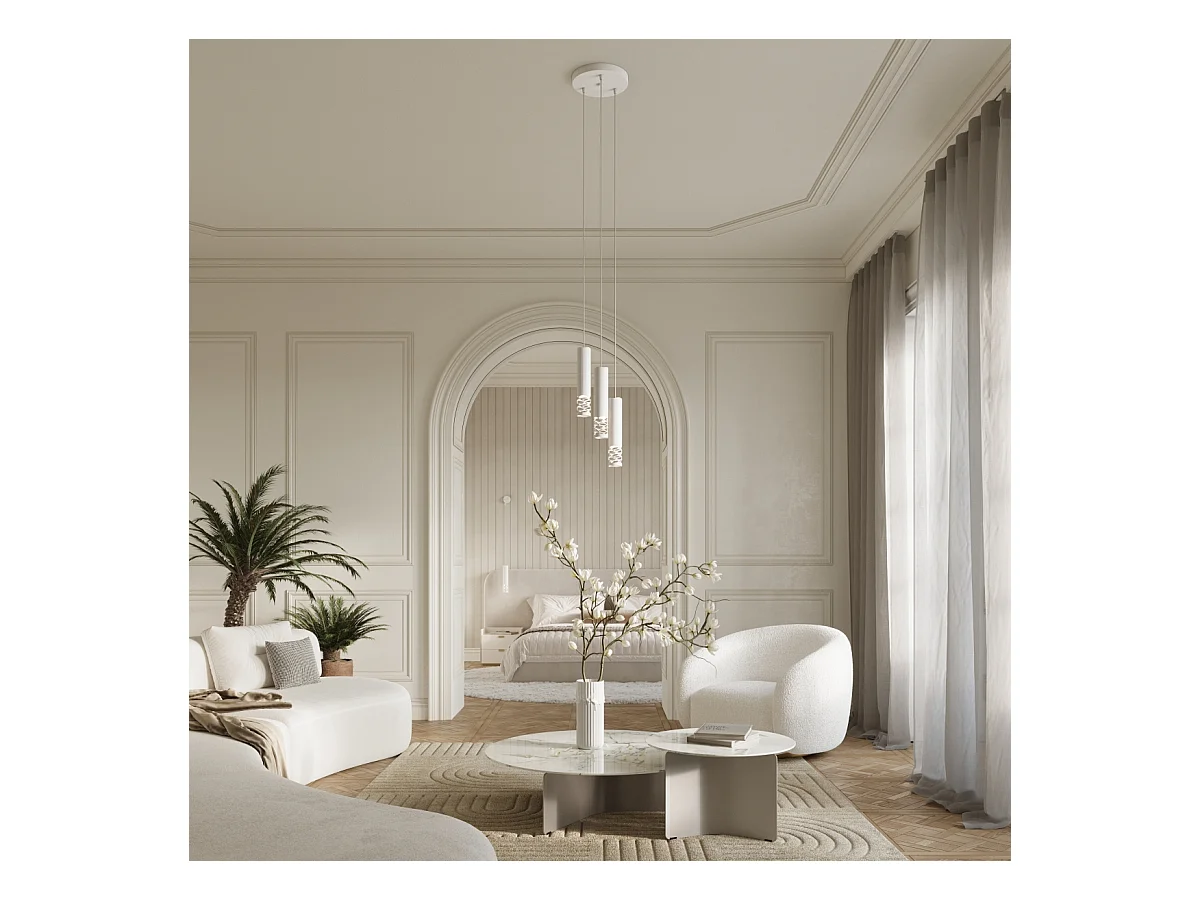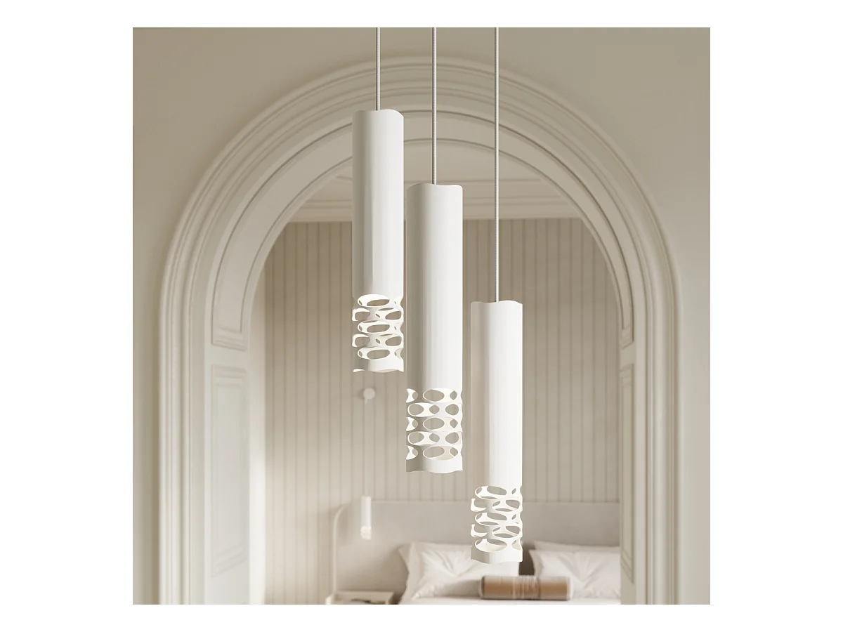 Lampe À Suspension Liro Moderne En Acier - 2 Sources Lumineuses - L.33 X H.125 Cm - Blanc