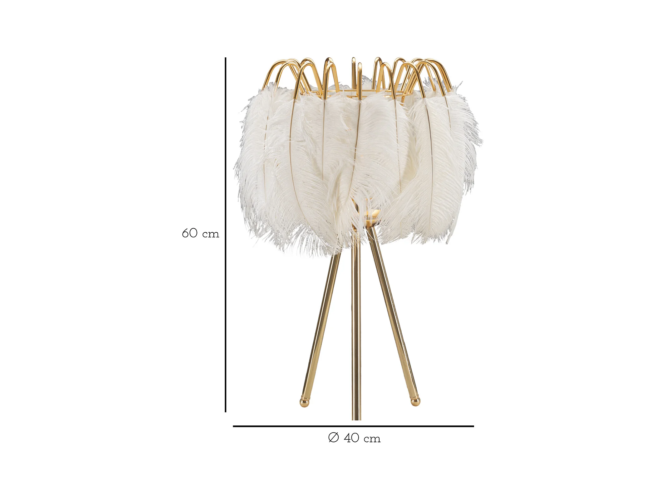 Lampe à Poser Imitation Plume "Diamon" 55cm Or & Blanc