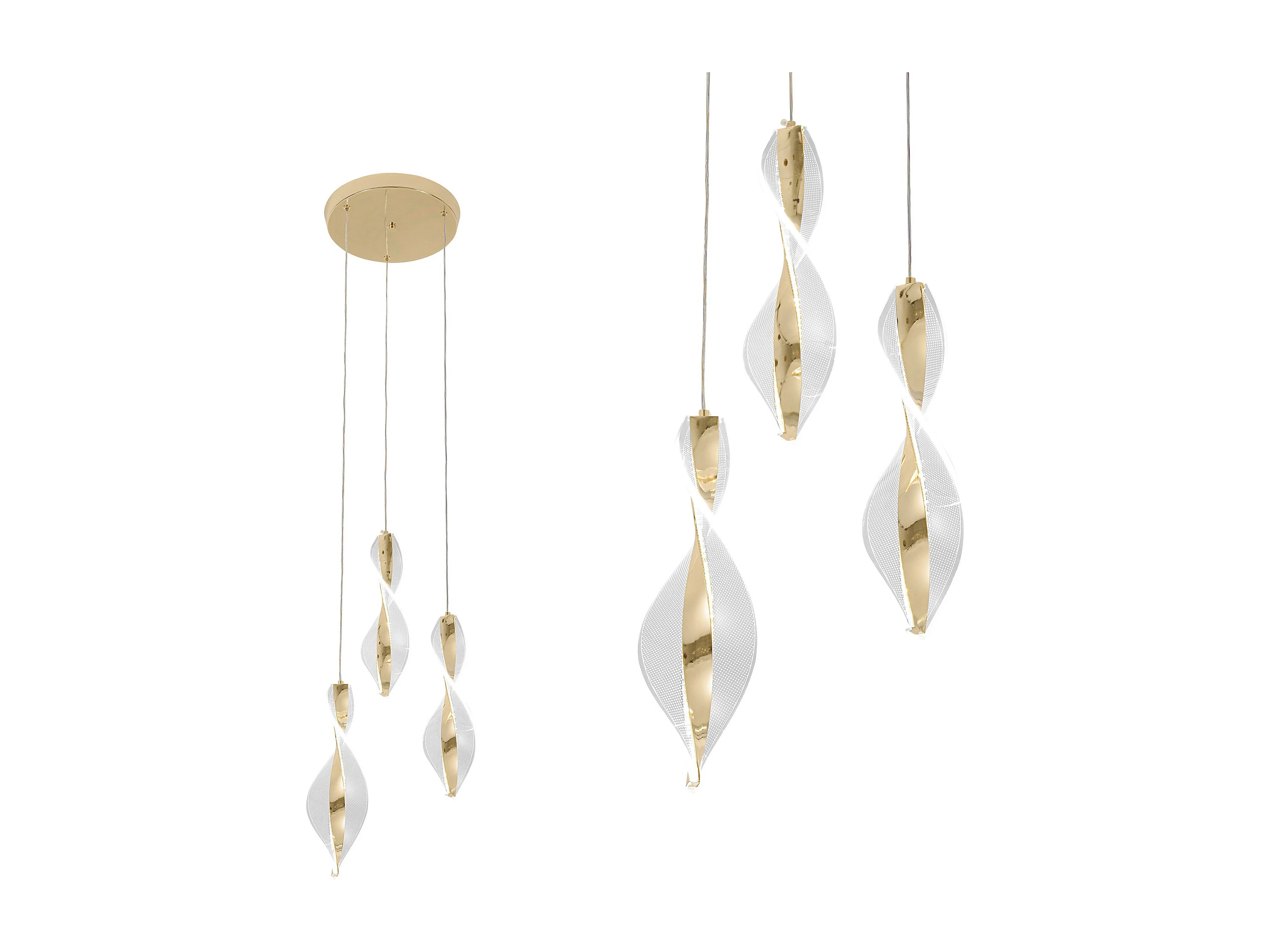 Suspension lustre et plafonnier doré