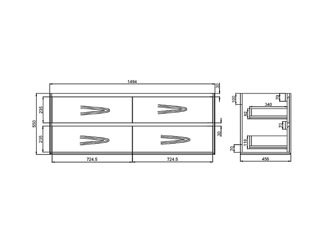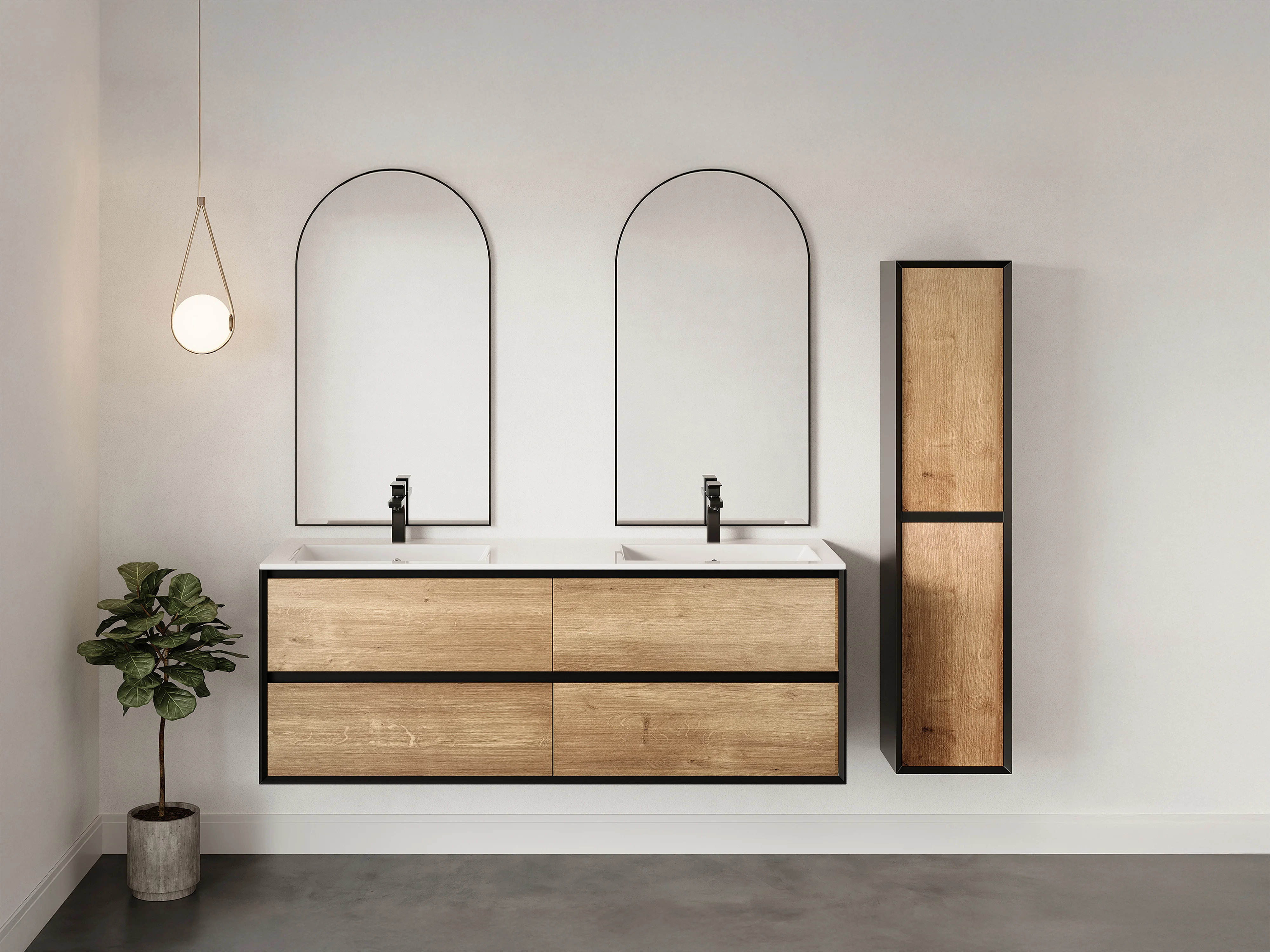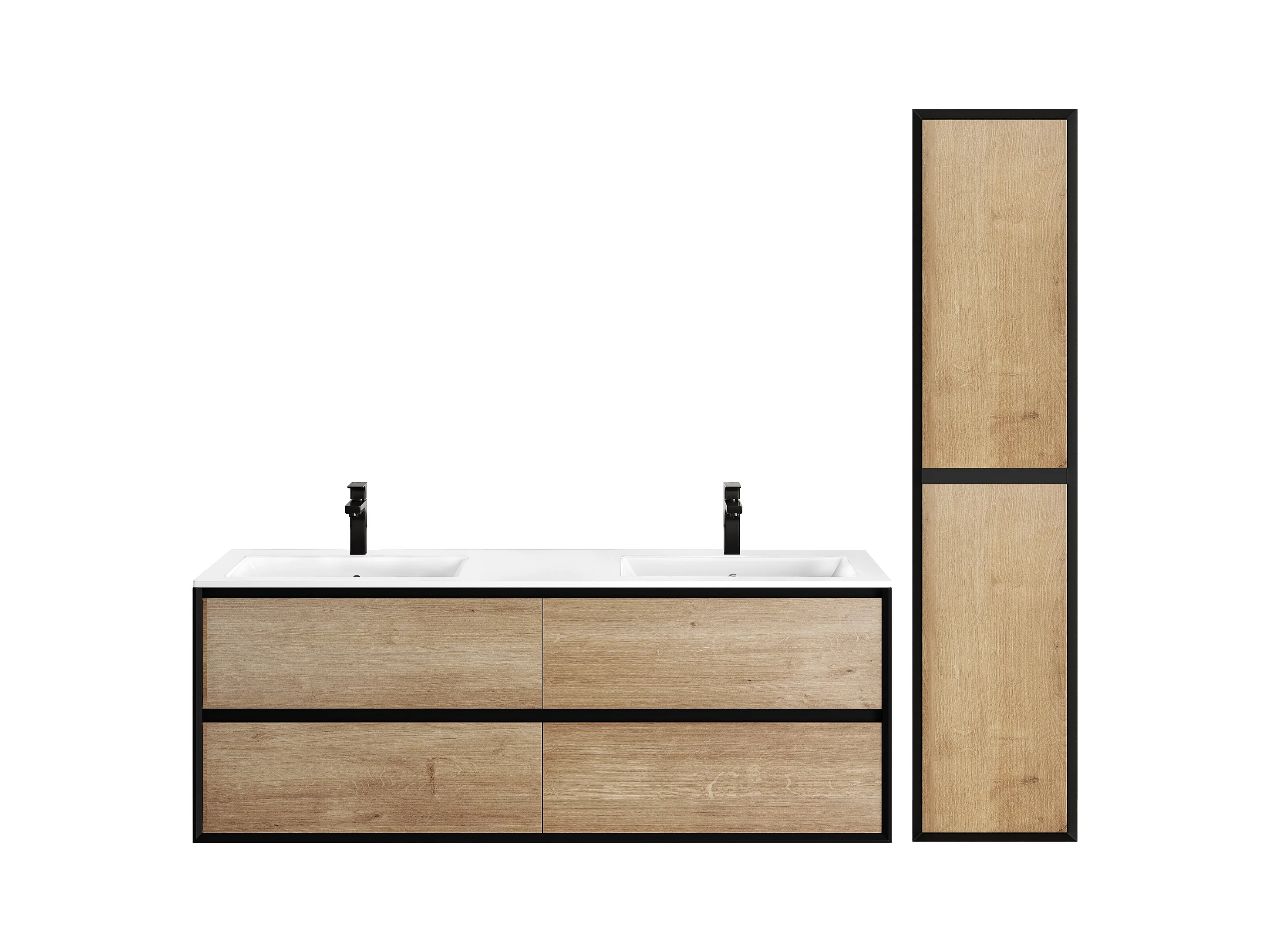 Meuble de salle de bain suspendu avec vasque à encastrer et colonne - Coloris naturel clair et noir - 150 cm - LANNICK