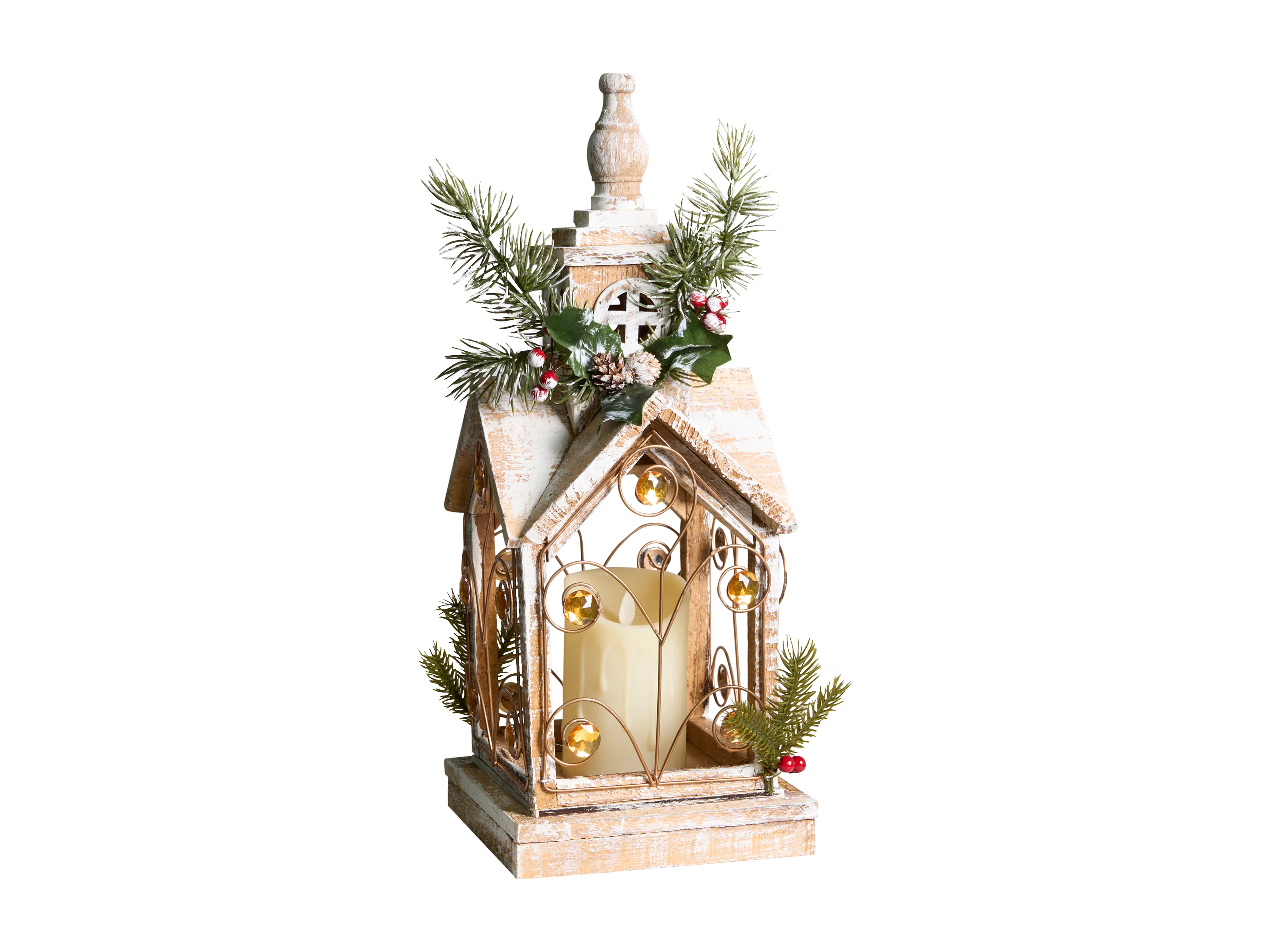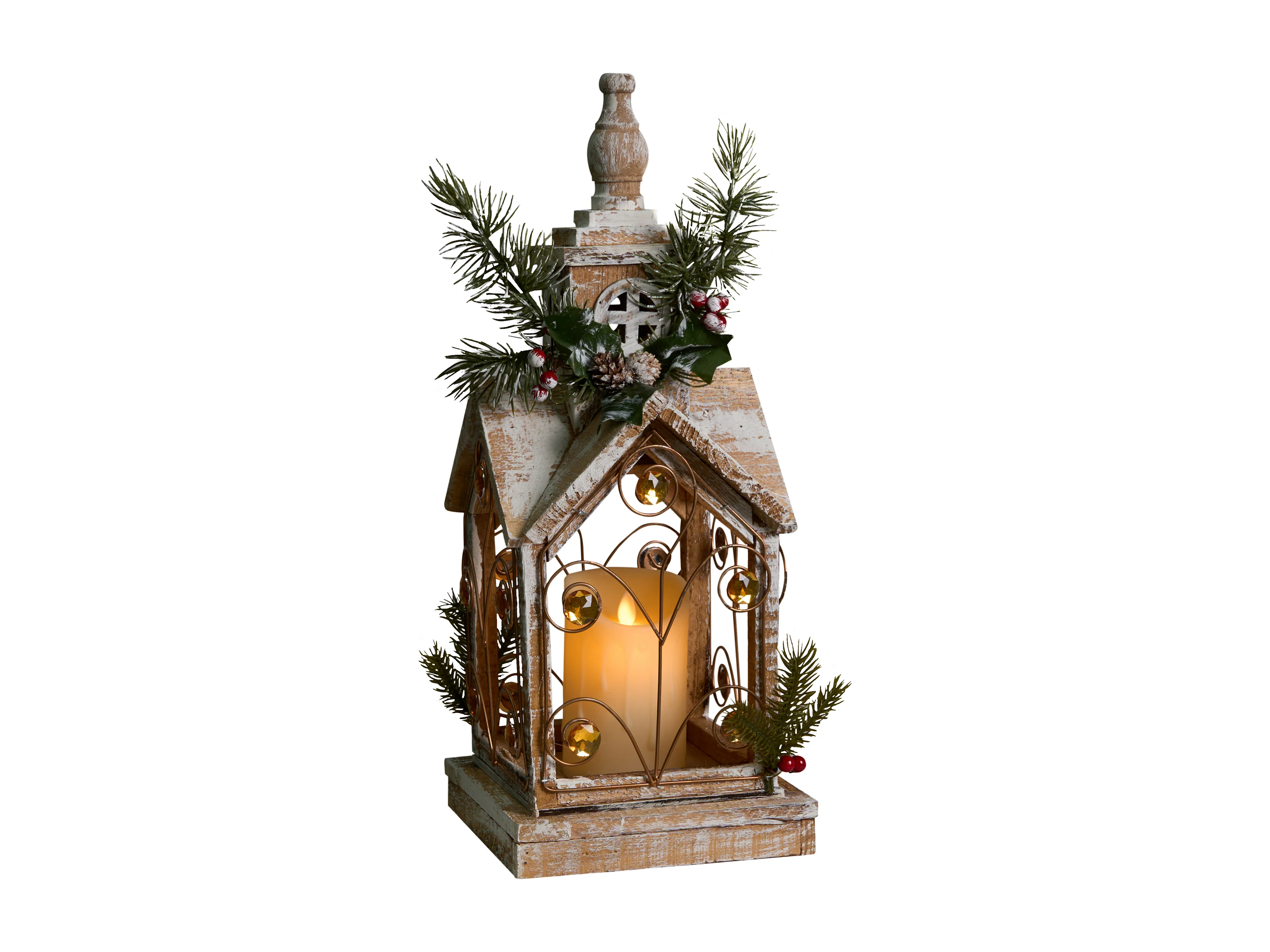 Lanterne LED SYVANSI Motif de Noël 46 cm Marron clair