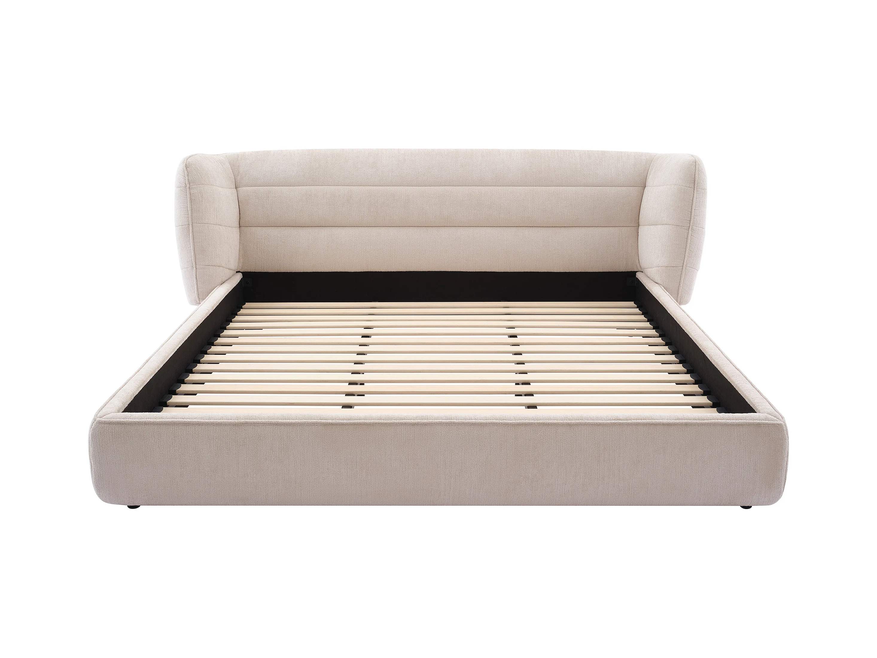 Lit 180 x 200 cm avec tête de lit incurvée - Tissu bouclette - Beige - LARUMO de Maison Céphy
