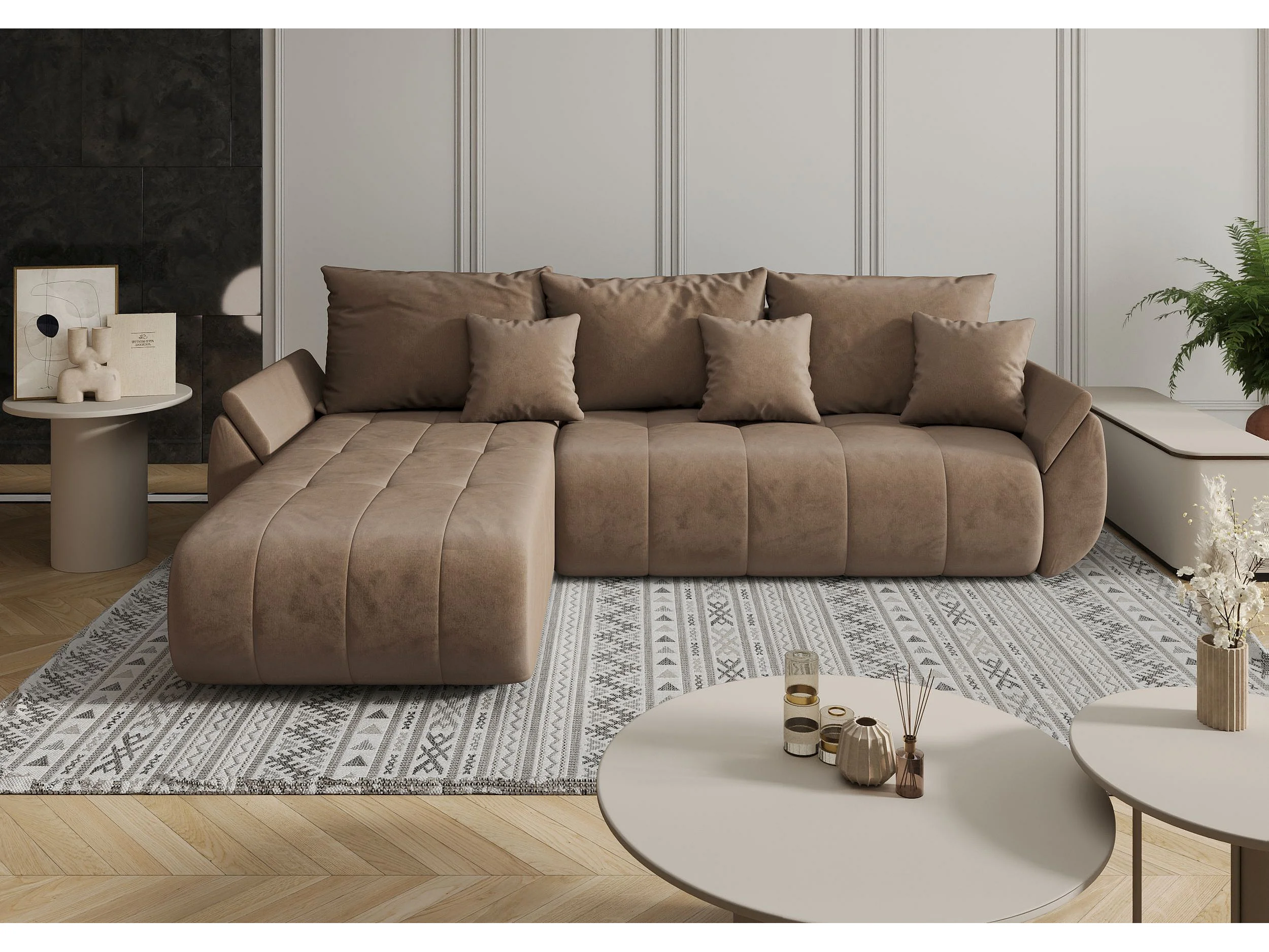 Le canapé d’angle TOKYO L avec fonction lit et tissu TOKYO L Monolith 09 gauche