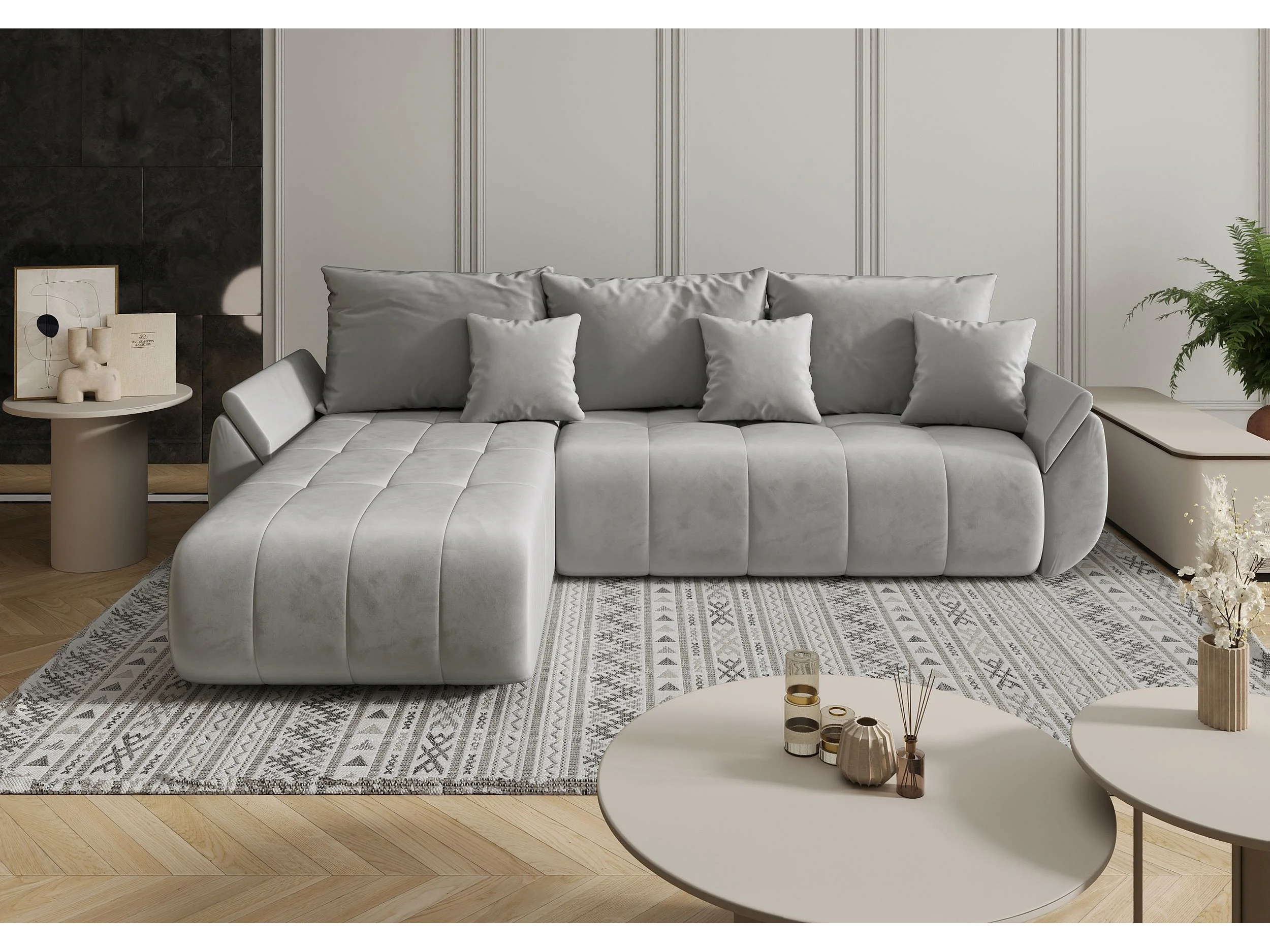 Le canapé d’angle TOKYO L avec fonction lit et tissu TOKYO L Monolith 84 gauche