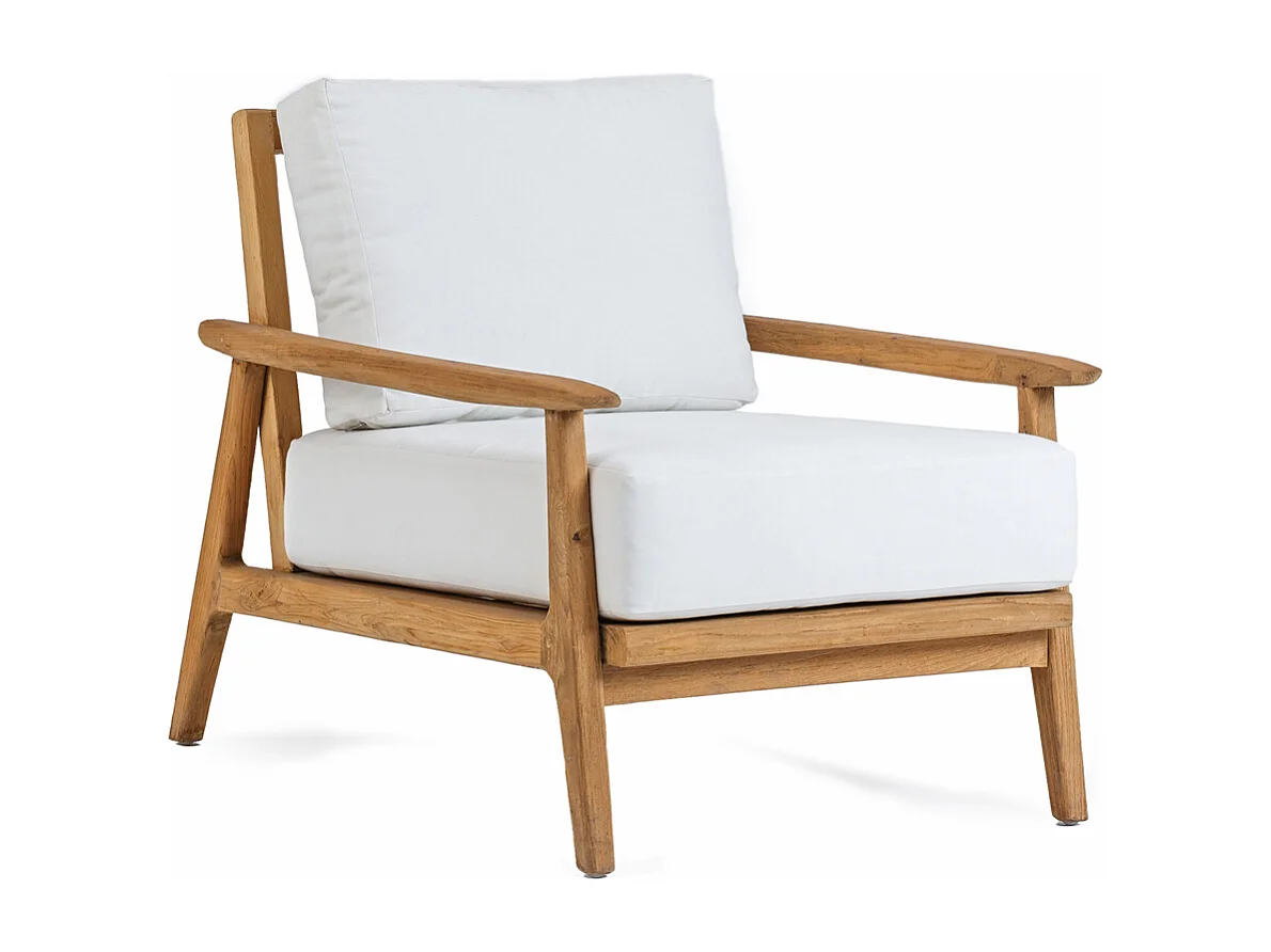 Fauteuil de jardin en tressage beige et pieds en bois de teck Peria - Lot de 2