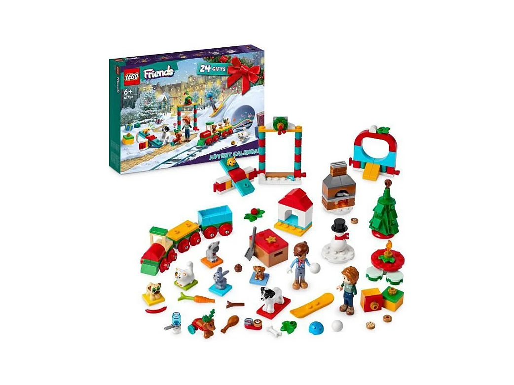 LEGO Friends 41758 Le Calendrier de l'Avent 2023, avec 24 Cadeaux dont 8 Figurines d'Animaux, 2 Mini-Poupées, Cadeau Noël
