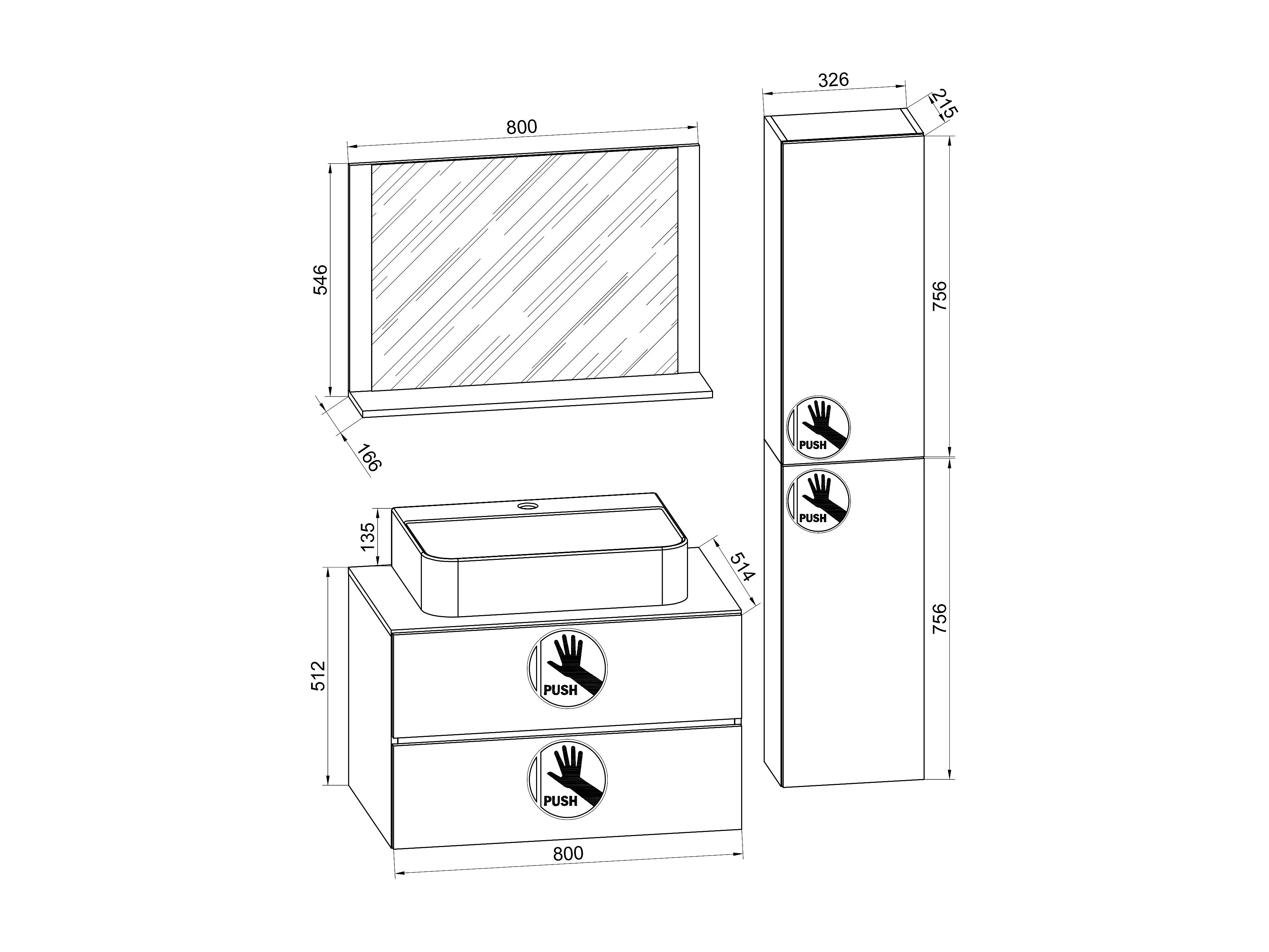 Bathroom furniture washbasin Lendas White H. 150 x W. 80 x D. 51 cm