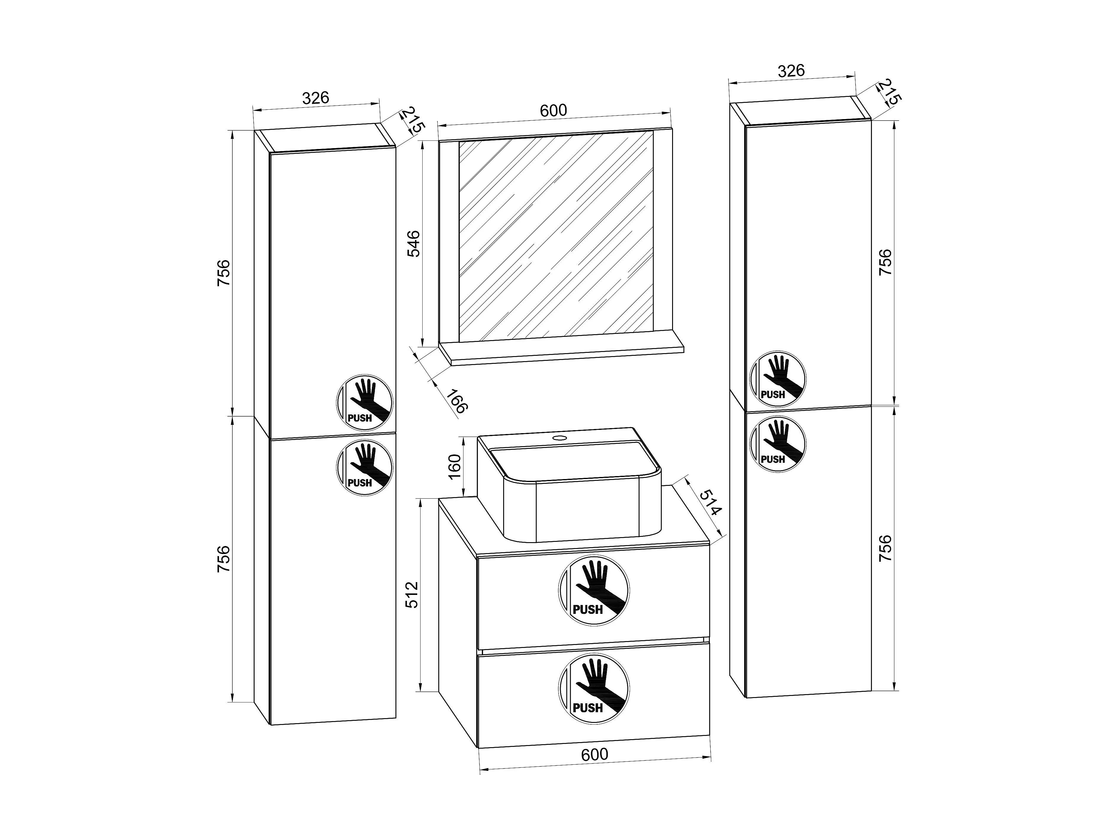 Bathroom furniture washbasin Lendas White H. 150 x W. 126 x D. 51 cm