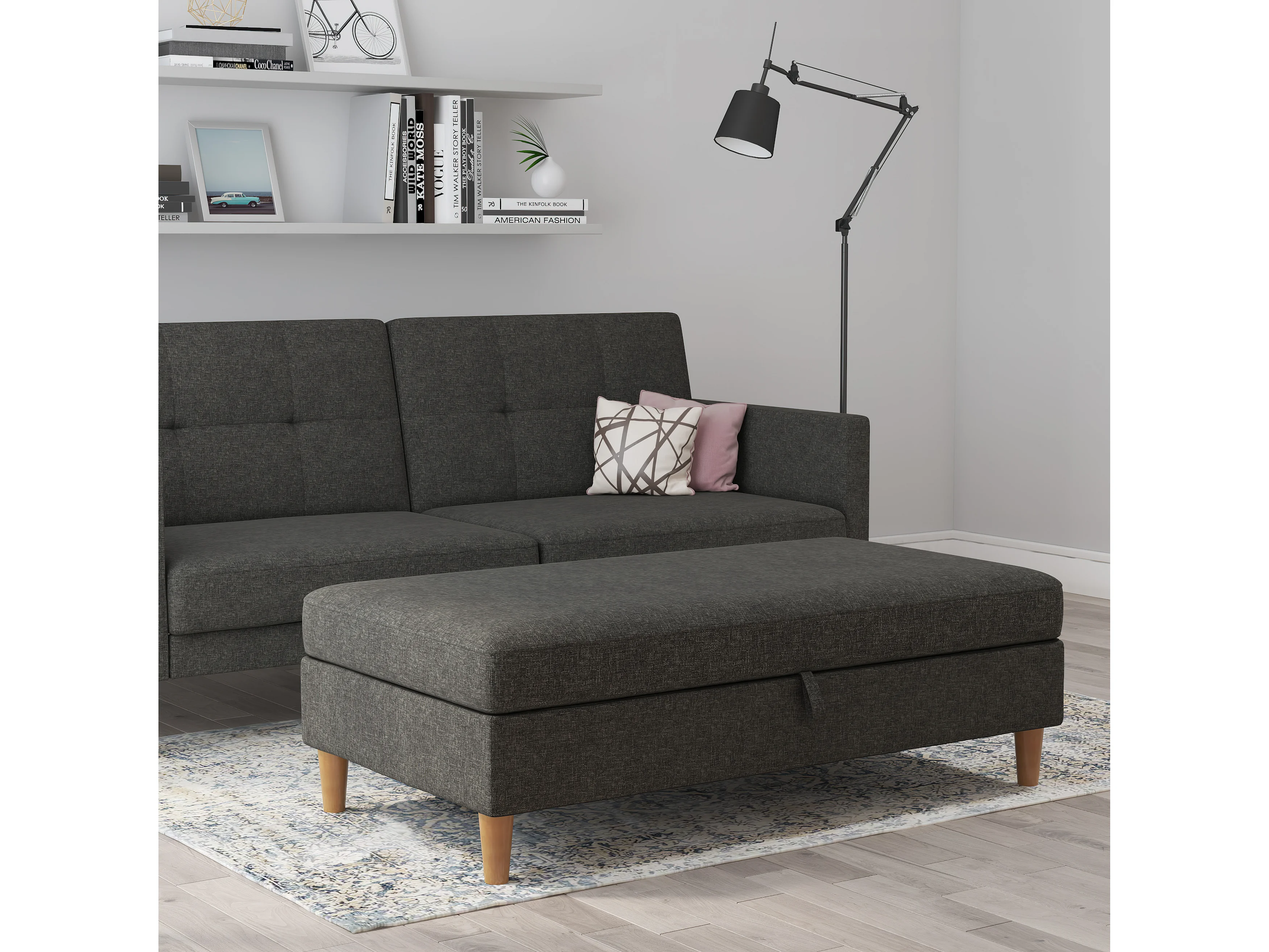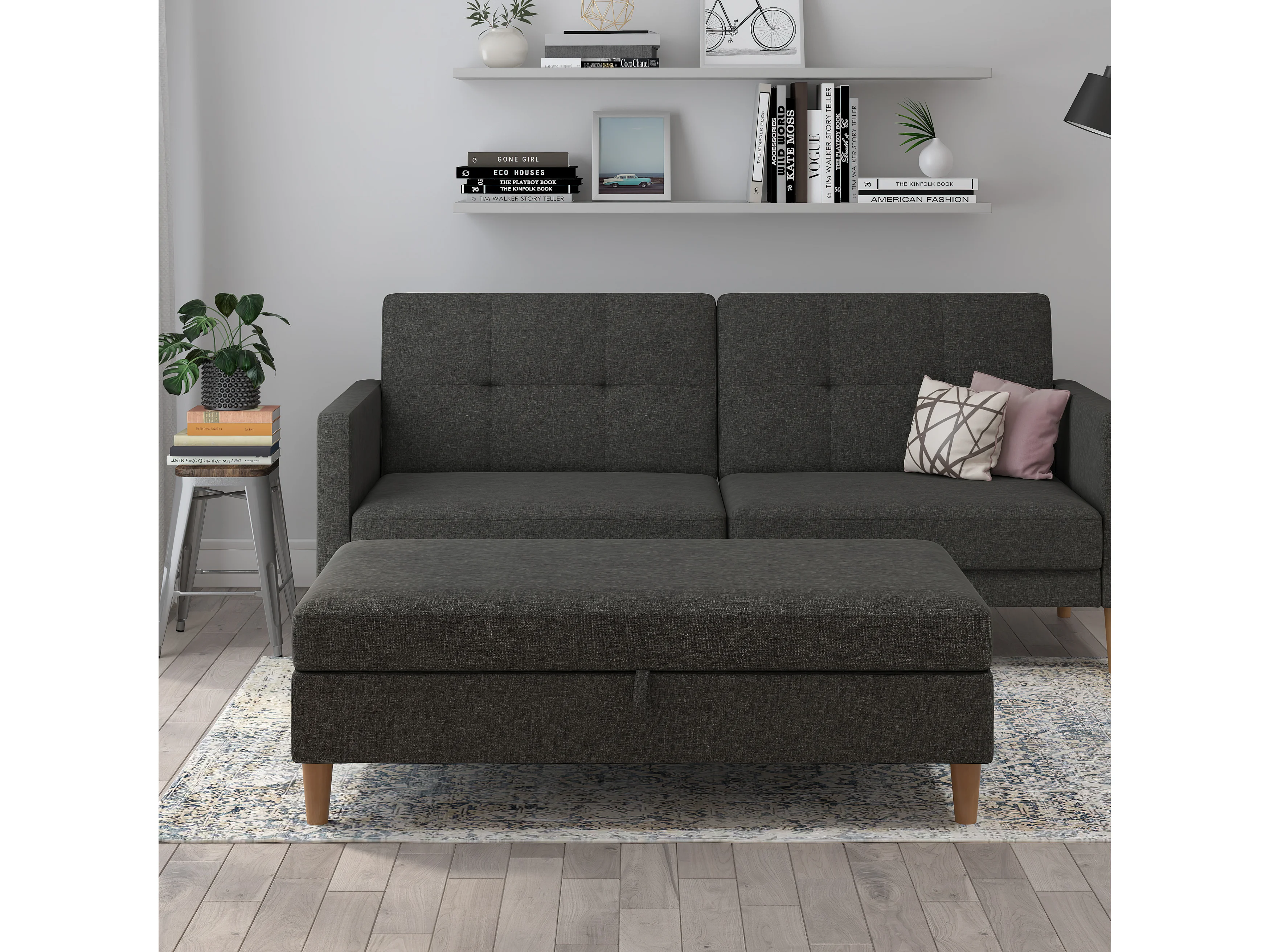 Lilly|Pouf avec rangement en tissu anthracite