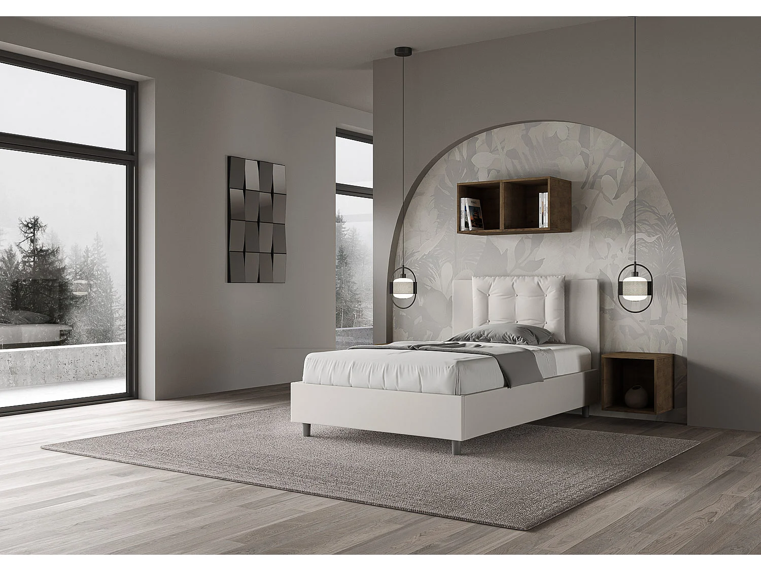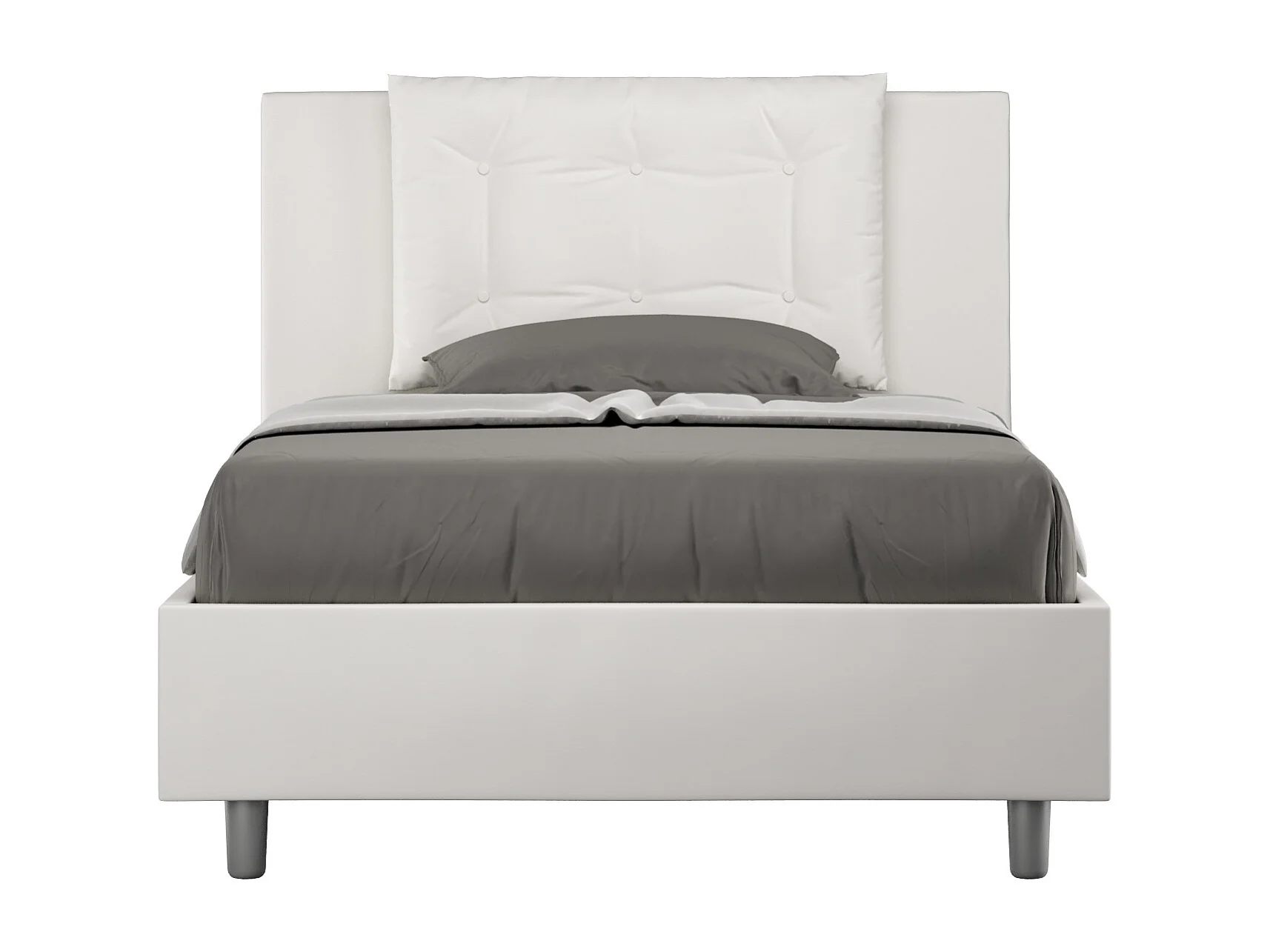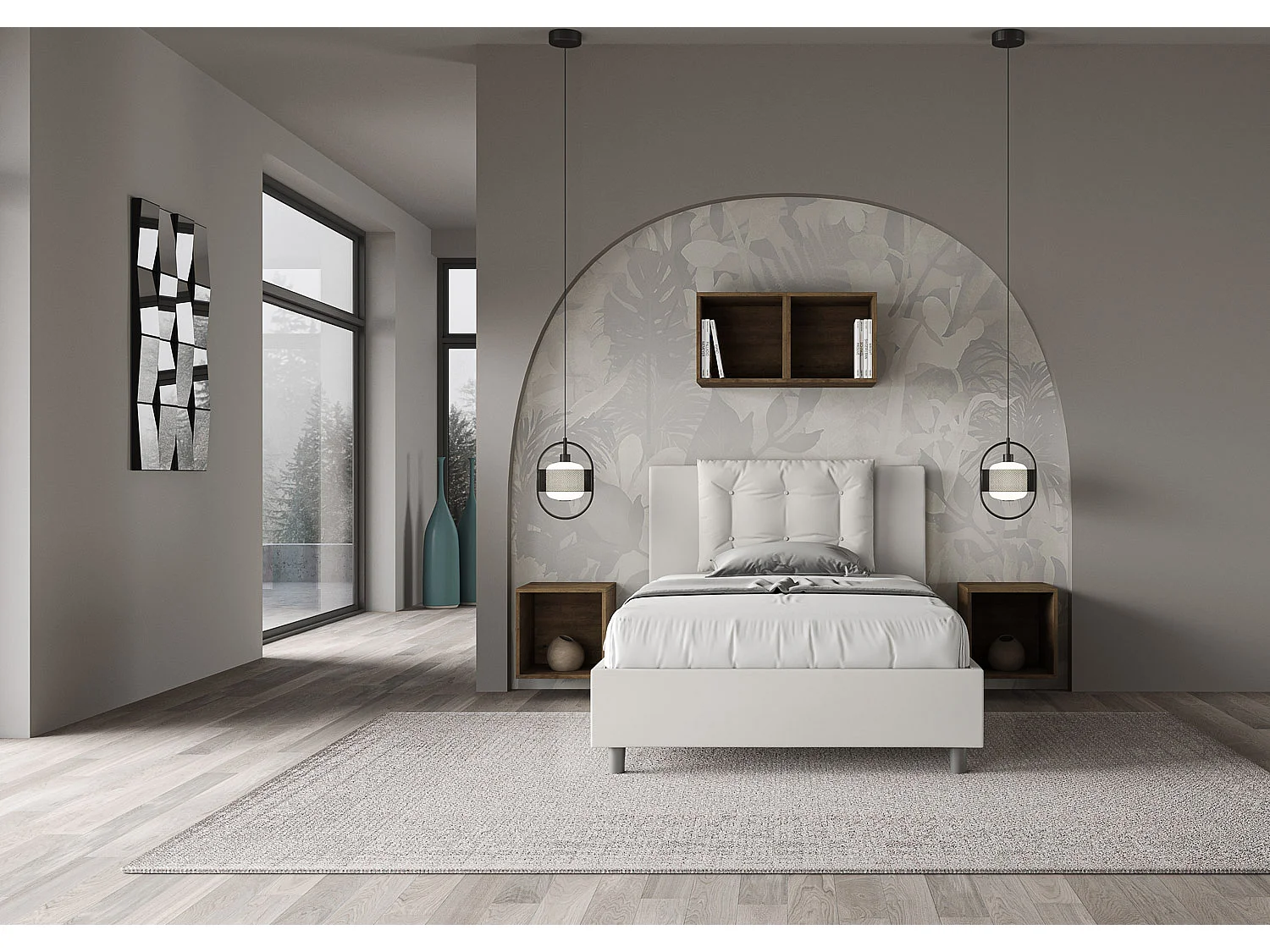 Lit 1 place et demi avec sommier rembourré 120x190 similicuir blanc Annalisa