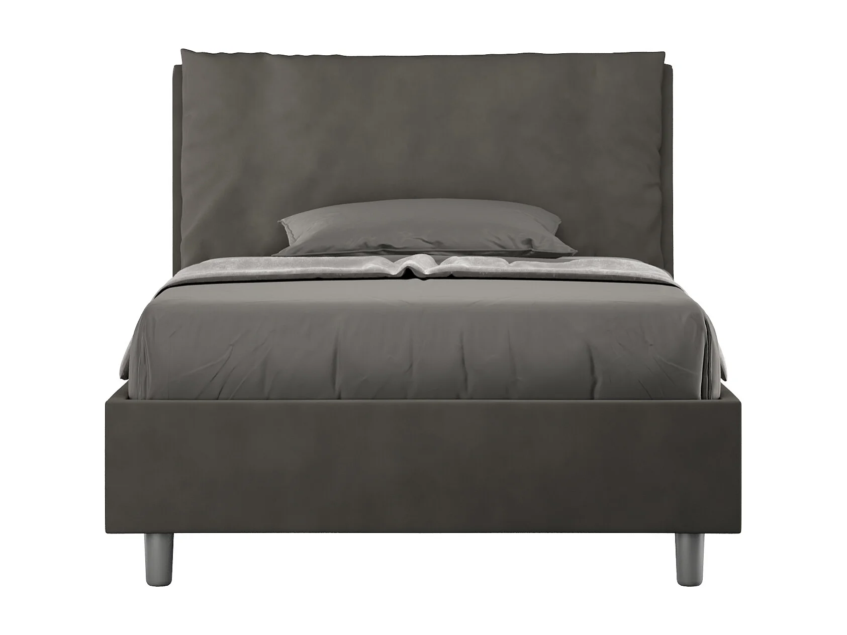 Lit 1 place et demi avec sommier rembourré 120x210 microfibre gris Antea Large