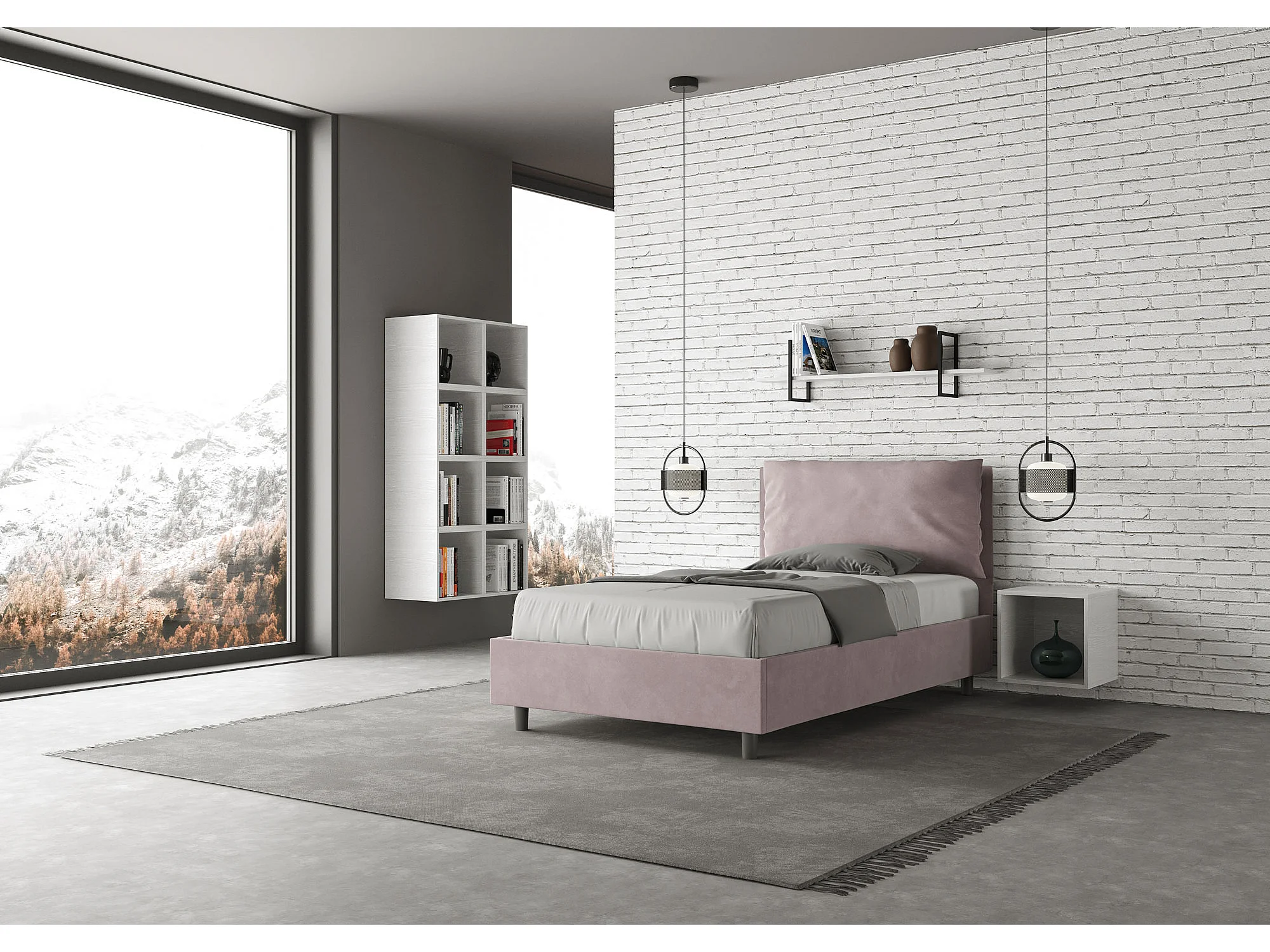 Lit 1 place et demi avec sommier rembourré 120x210 microfibre lilas Antea Large