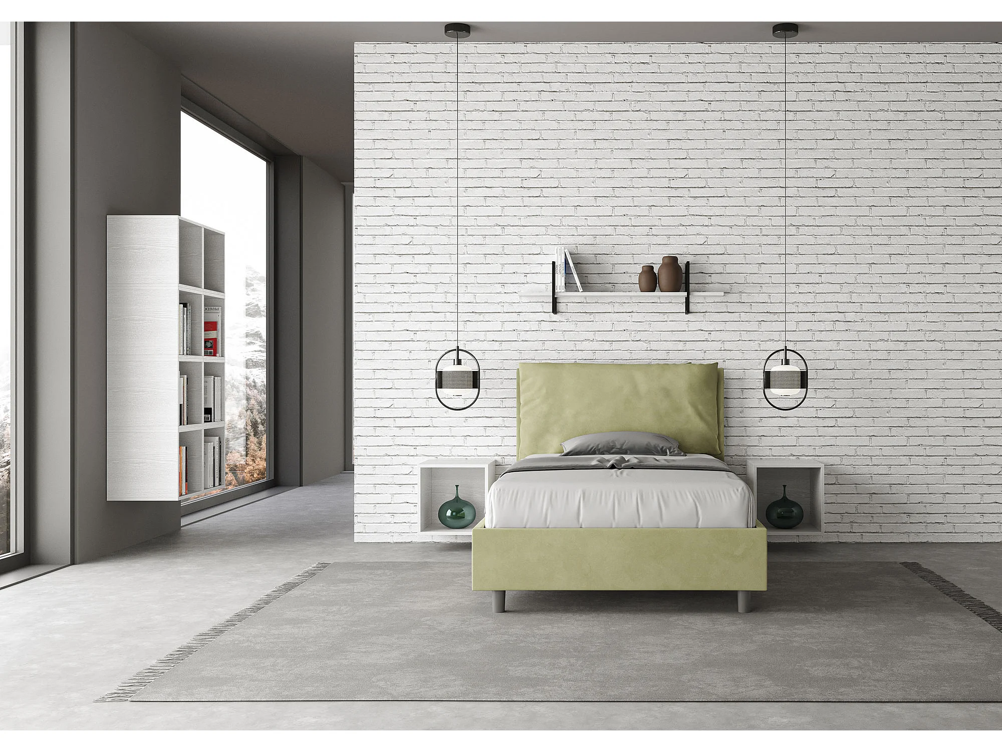 Lit 1 place et demi sans sommier rembourré 120x190 microfibre vert Antea Large