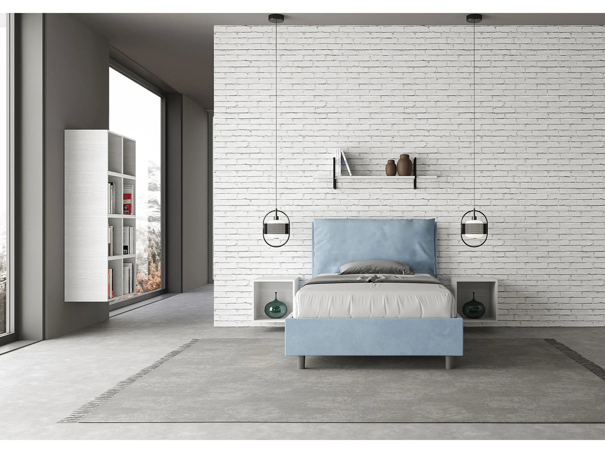 Lit 1 place et demi sans sommier rembourré 120x200 microfibre bleu clair Antea Large