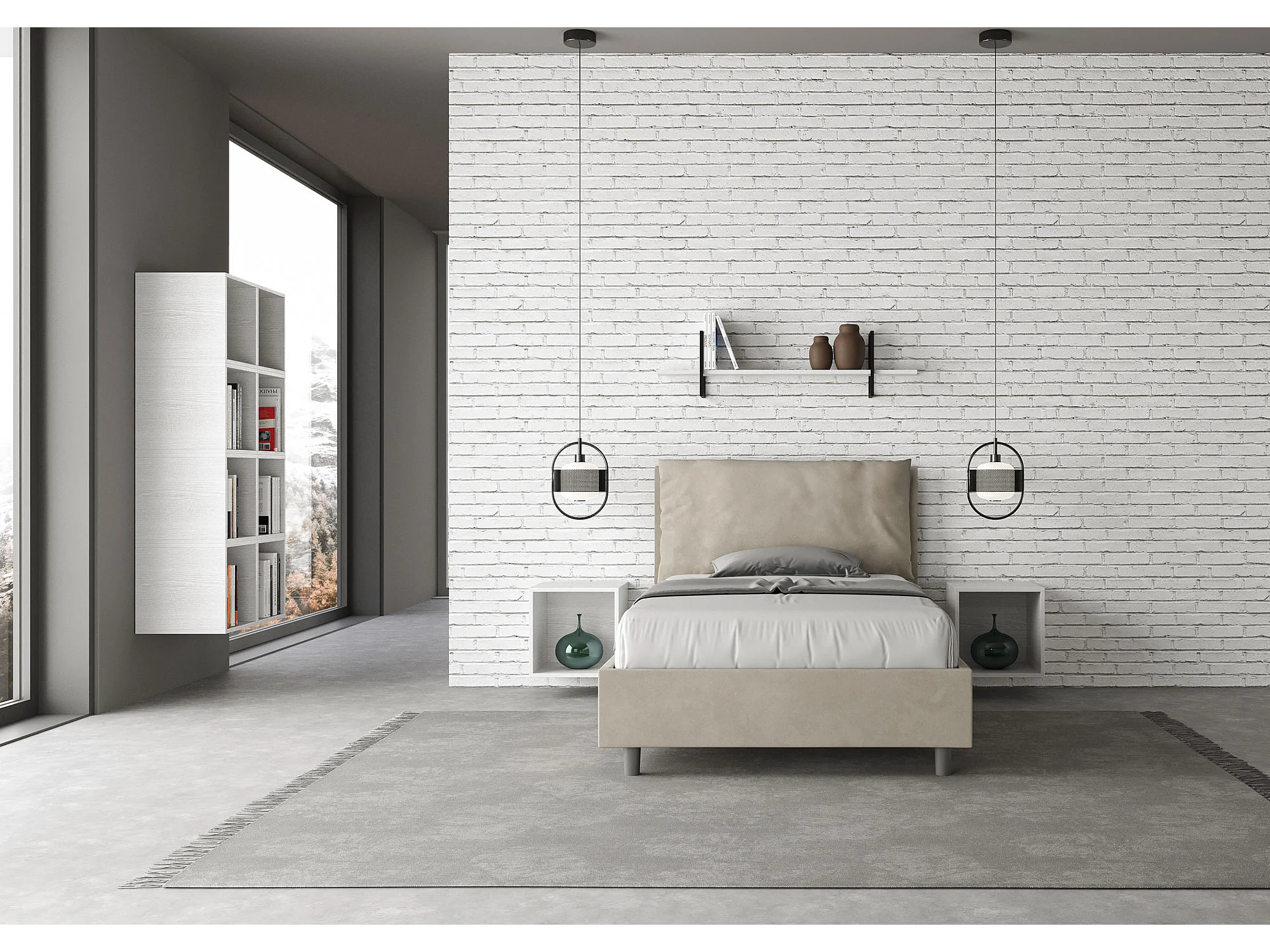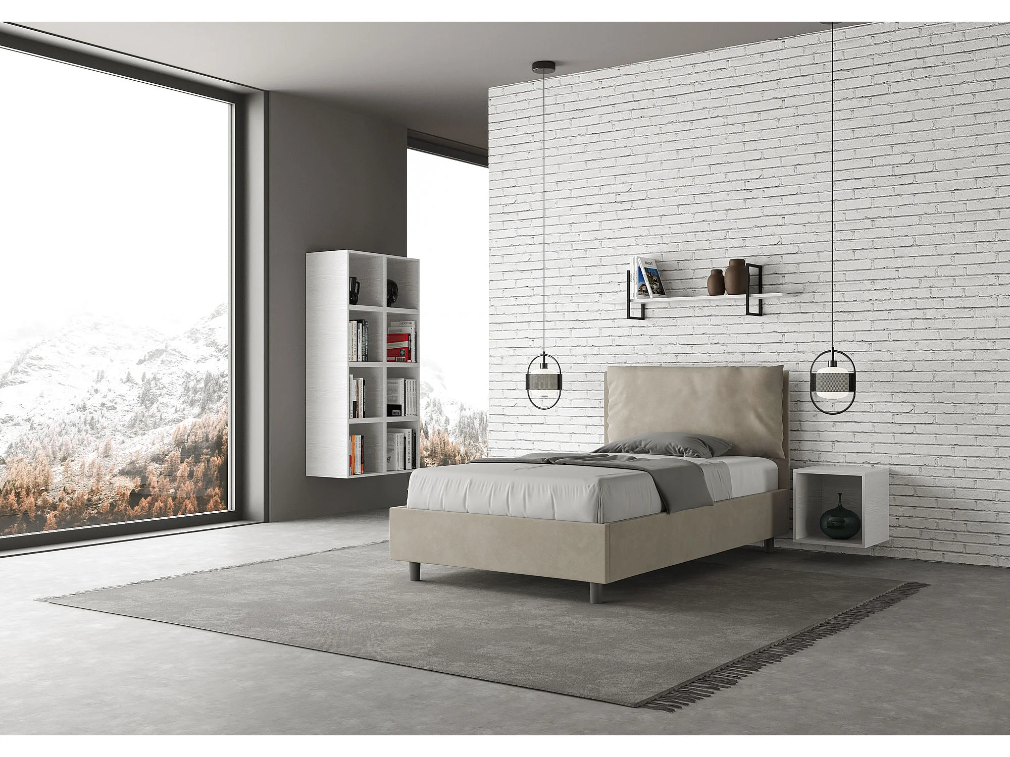 Lit 1 place et demi sans sommier rembourré 120x210 microfibre sable Antea Large