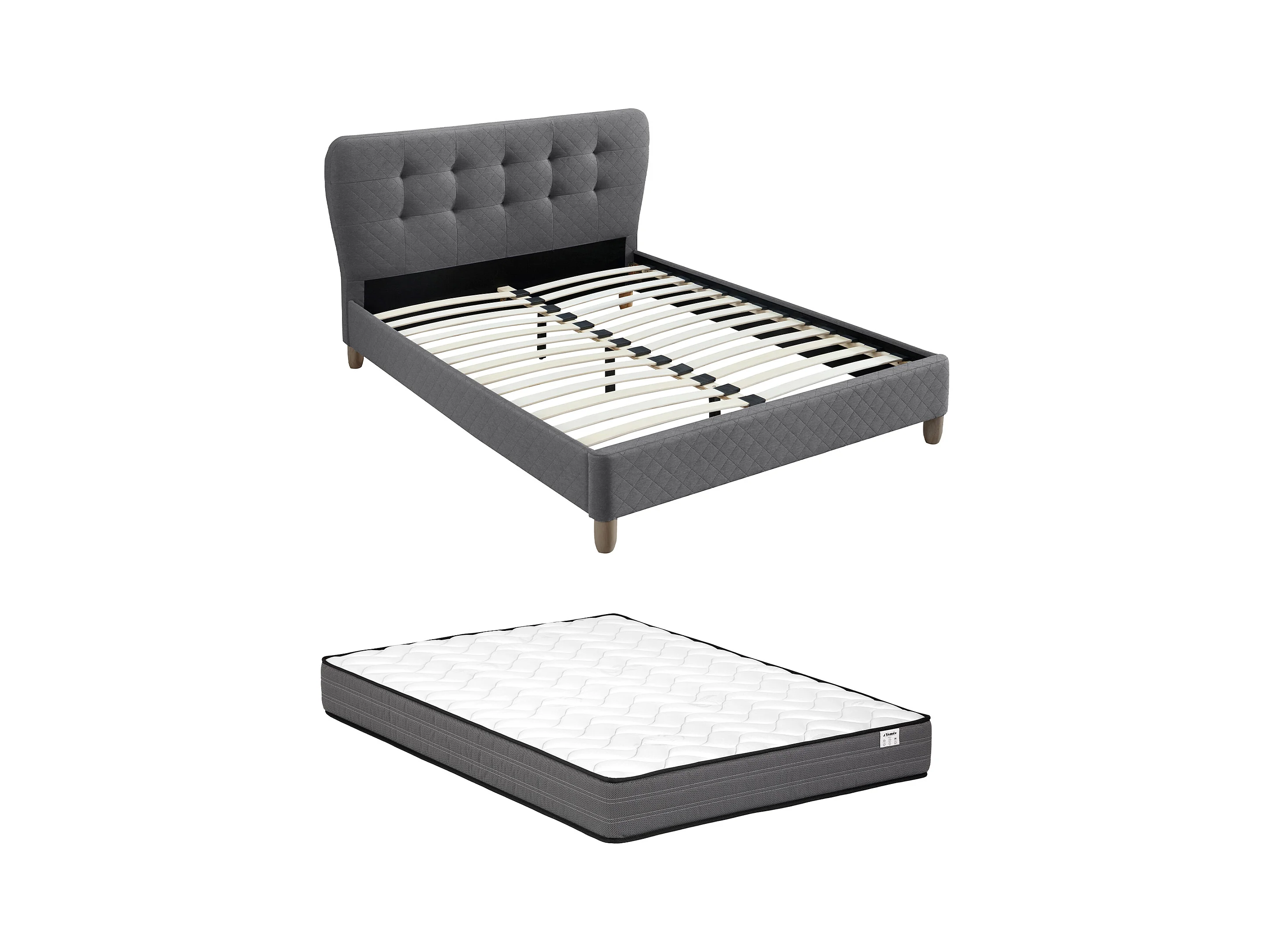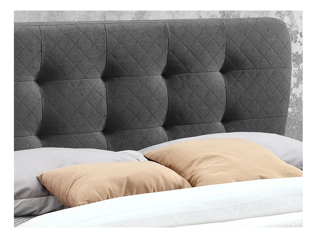 Lit 140 x 190 cm avec tête de lit capitonnée - Tissu - Gris + Matelas - ELIDE