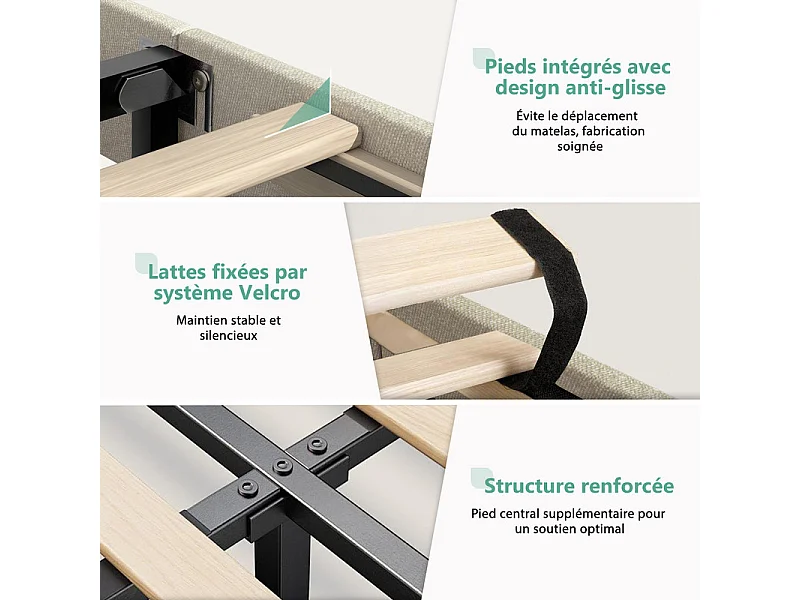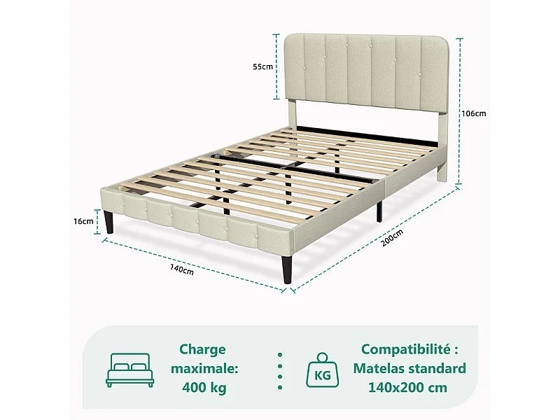 Lit 140 x 200 cm avec tête de lit capitonnée - Lit double avec tête de lit - Gris anthracite